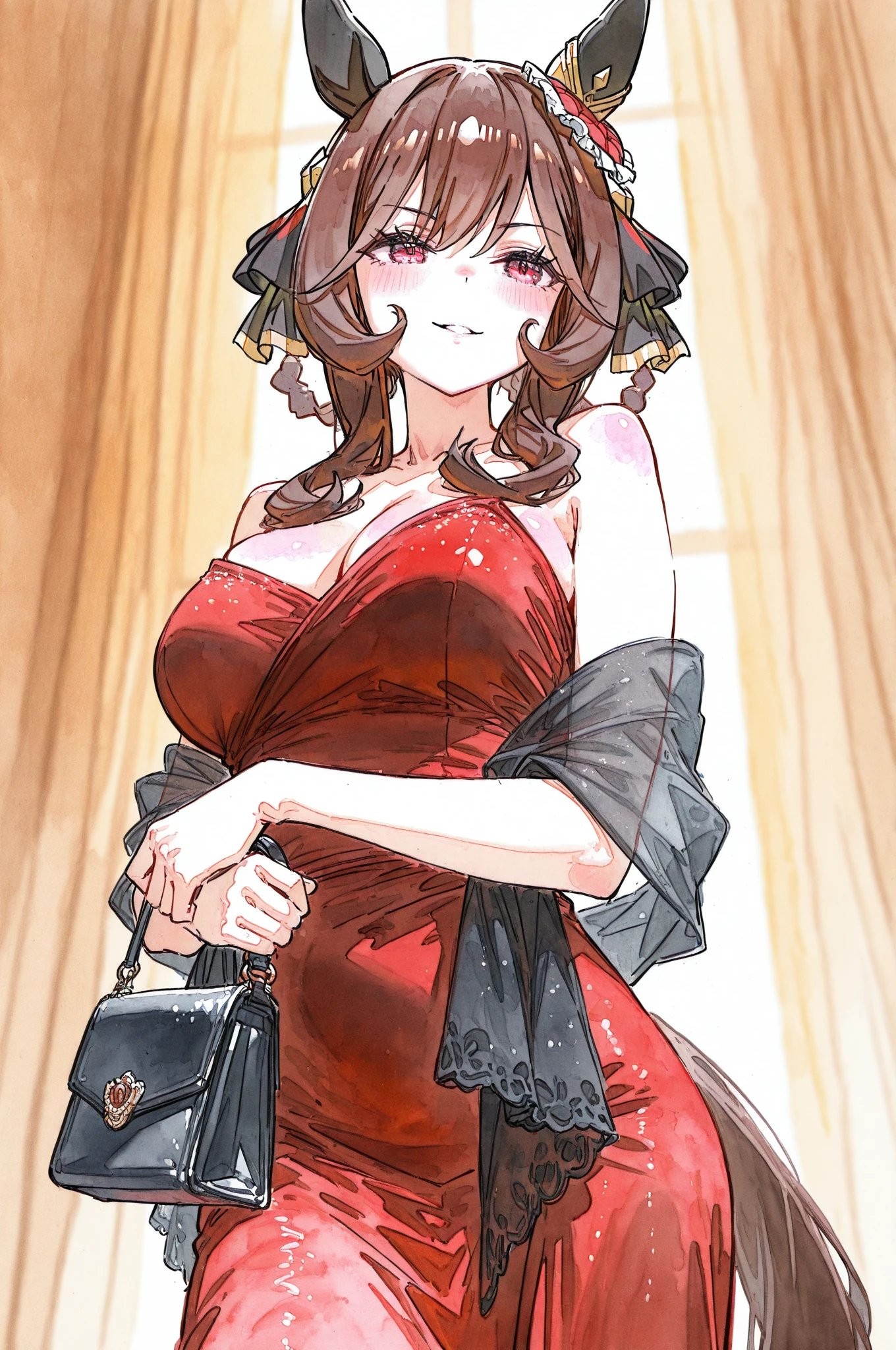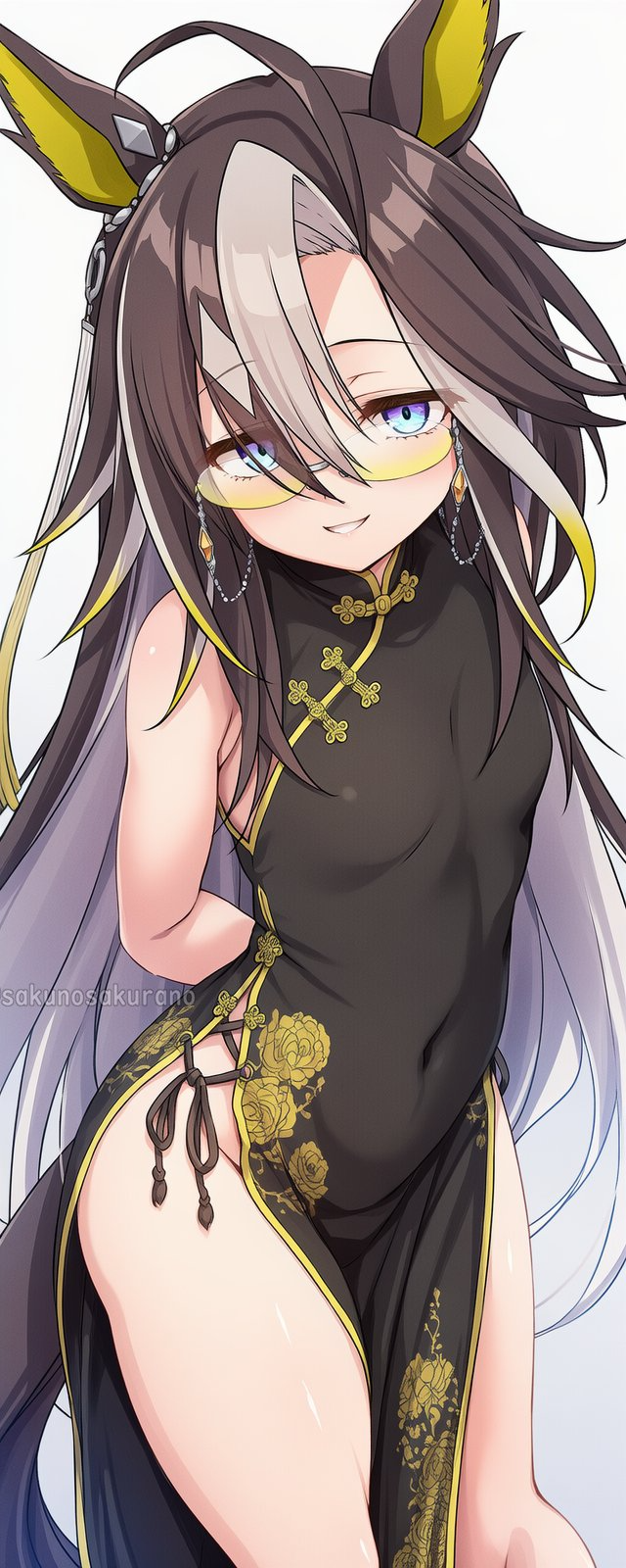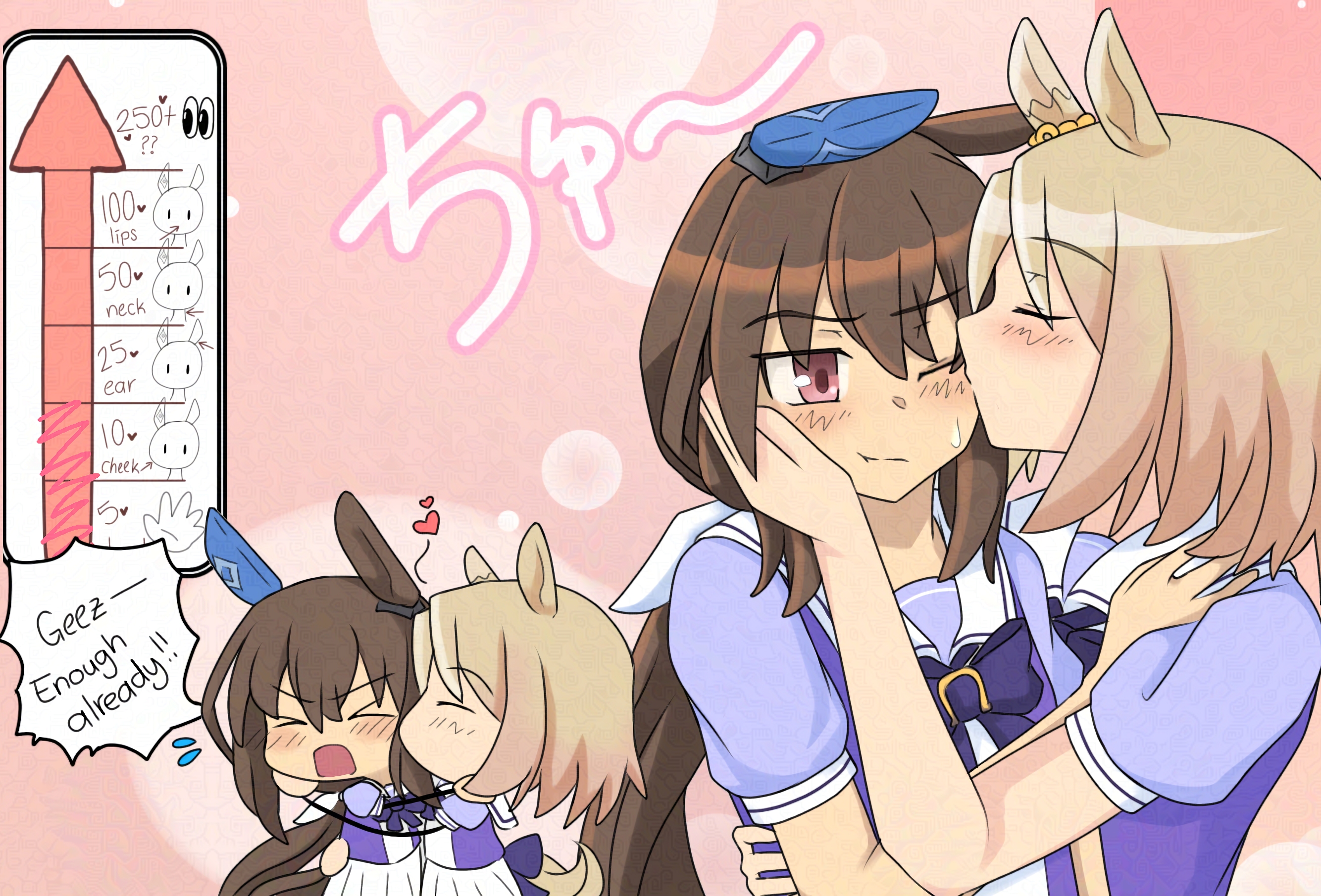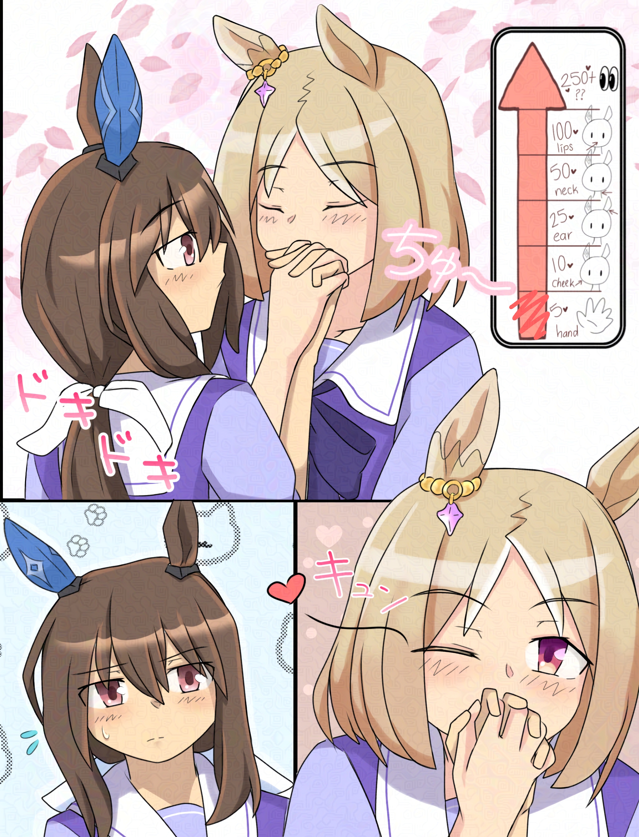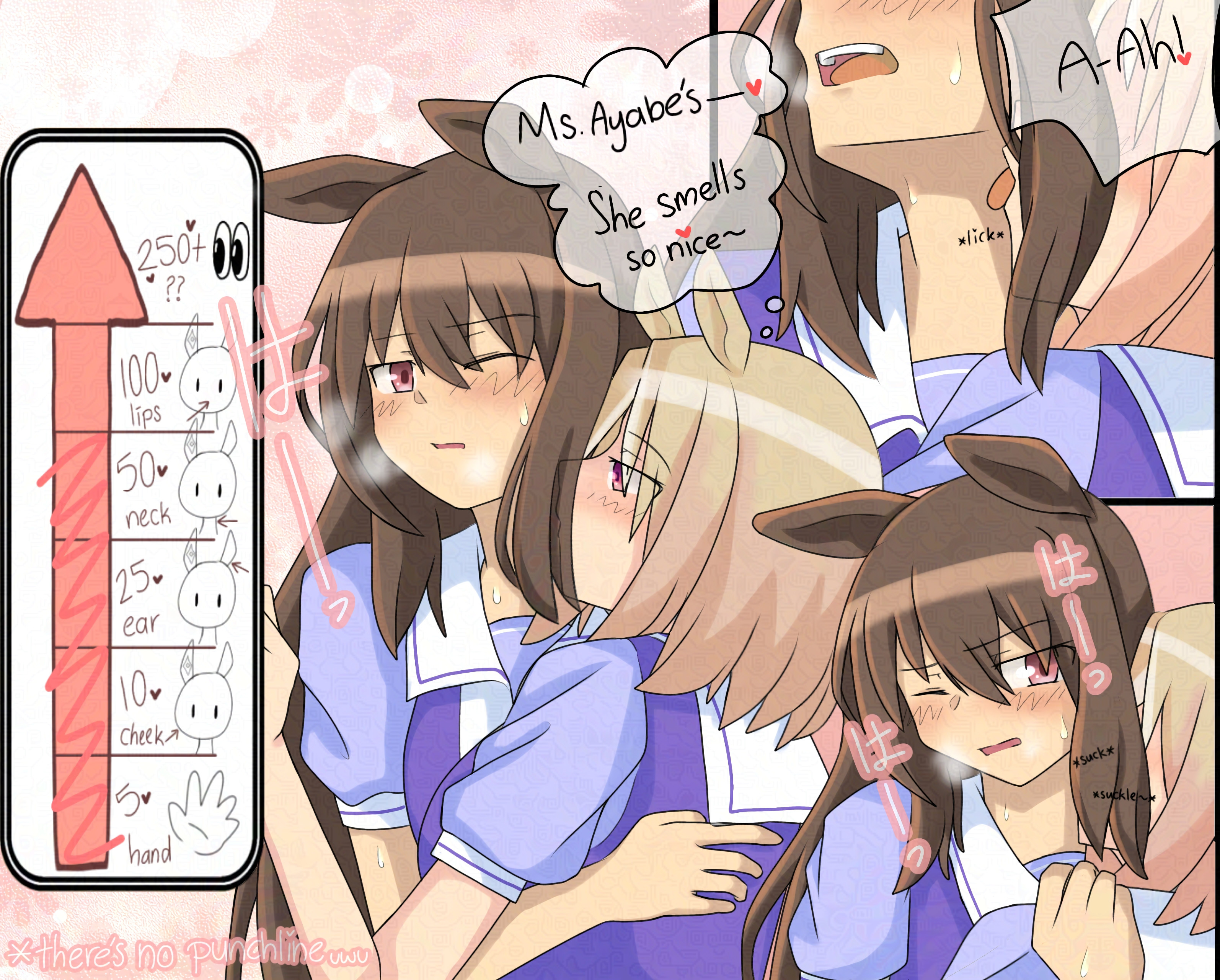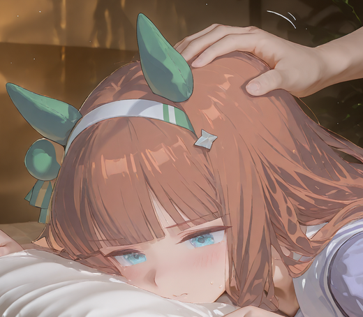 I like genning promps where Umas get head patted, however due to the way I cropped this image it looks like someone is taking Suzuka from behind but I assure you the full image is that of Suzuka being headpated