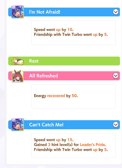 >>558022626Any one? Should I be putting a stam card in her deck and click stam more often? I thought front runners were overall easier on stam than pace chasers. She's crapping out on the 3000 3200 races