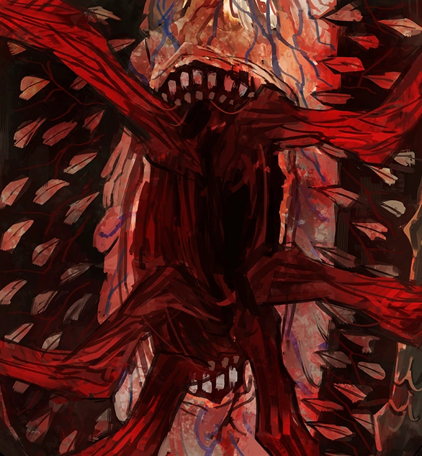 >Yuri survives up to Kromer fight>Dreamer of Human Wholeness is made>everyone gets swatted except for Yuri>she tries fighting, but Kromer's maw drags her in>Yuri struggles to break out, but Kromer's grip on her is too strong>her limbs are forcefully shoved into awkward position>one hand pulls on her cheek, another undoes her bow, more hands start lightly tugging on her clothes>a pair of hands goes under her shirt, rubbing her chest and stomach>a hand begins petting her while another slides under her panties>Yuri tries holding back her moans and tears>sweat, blood and other fluids soak her clothes from Kromer's body heat and stimulation>then, all hands abruptly stop>she's left panting and confused>the grip loosens, she can move her limbs now>Yuri successfully escapes and tries to run>the hands suddenly extend toward her and swiftly pull her inside again>this time, the doors close and Kromer doesn't merely tease her>Yuri's clothes are torn apart in an instant and numerous hands assault her>they are very rough, even clawing at her or dragging her across teeth inside, just enough to draw blood without risking killing her>her squeals are muffled by a hand over her mouth though they are still perfectly audible to anyone outside through a layer of dense flesh>Kromer cackles madly, clearly having a blast