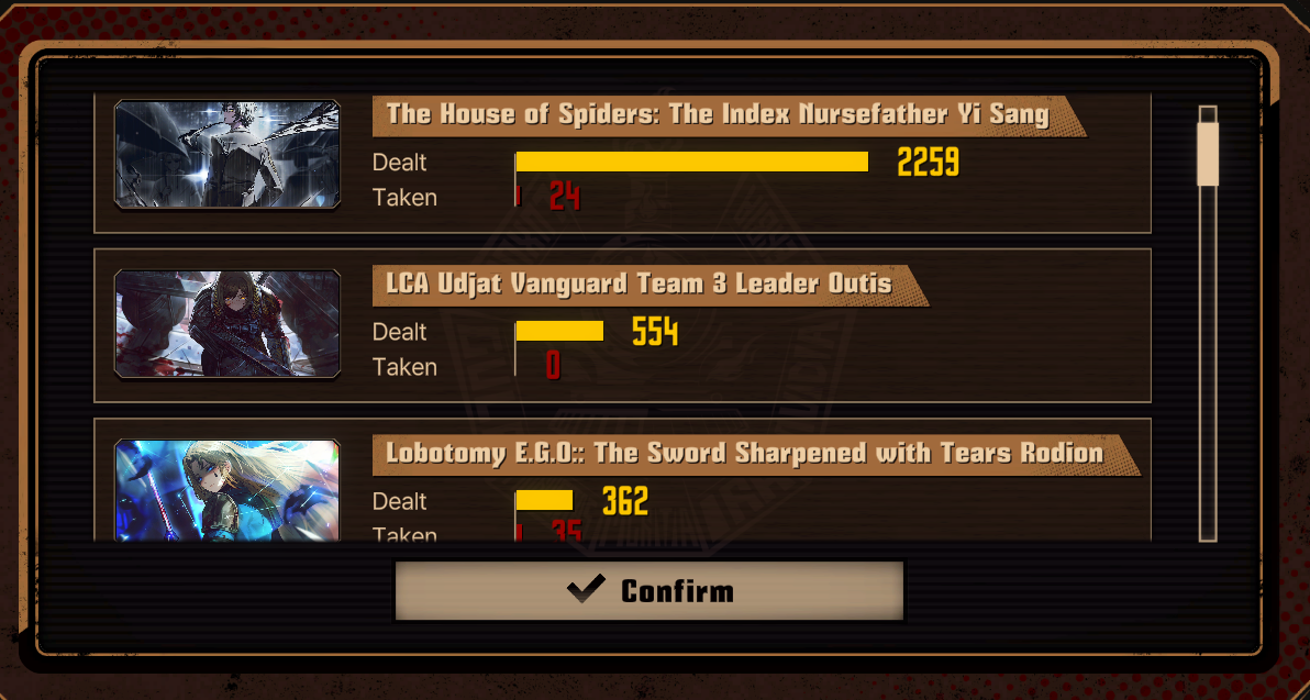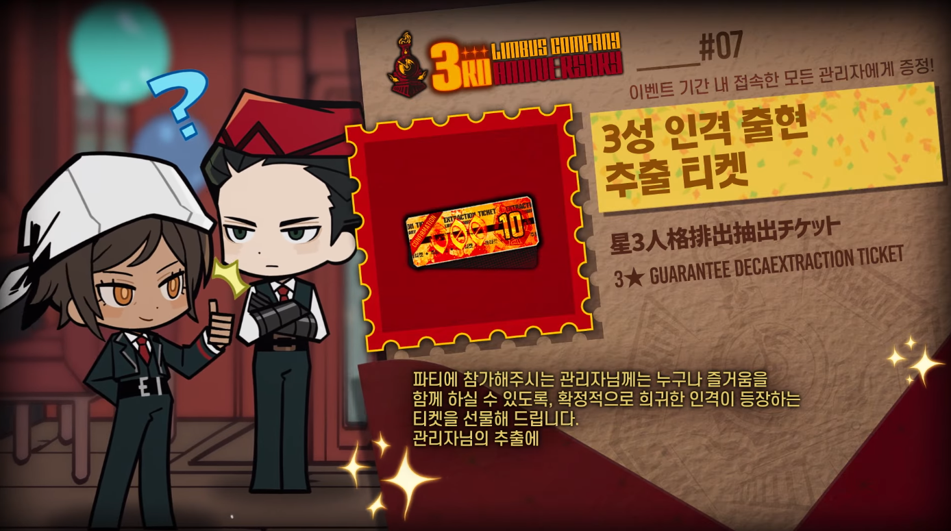 Previous thread: >>557991528Season 7 - Kumo no Ito2025.12.31 —Mirror Dungeon #7 - Mirror of Names and Spiders2026.02.19 —Refraction Railway Line 5 - Merry Go Round2025.02.20 —>Current Events>Upcoming Extractions>Current Extractions2026.02.19 — 2026.03.05[000] The House of Spiders: The Index Nursefather Yi SangTarget Extraction: [Hong Lu] ID & E.G.OTarget Extraction: [Hongyuan]>FAQs! This game is directly tied to the setting of Project Moon's previous games, Lobotomy Corporation and Library of Ruina, and is set after both. Expect spoilers for those games in this thread.! The tutorial is important.>Download linksAppStore: https://apps.apple.com/app/limbus-company/id6444112366Google Play: https://play.google.com/store/apps/details?id=com.ProjectMoon.LimbusCompanySteam: https://store.steampowered.com/app/1973530/Limbus_Company/>Other linksOfficial twitter: https://twitter.com/limbuscompany_bOfficial youtube: https://www.youtube.com/@ProjectMoonOfficialOfficial site: https://limbuscompany.global>Required readinghttps://mega.nz/folder/xosDkZ5Z#Wt4JpUt5Bb2XG77pxuuXpw>For all your EGO and Sinner info needshttps://limbus.kusoge.xyz/https://gll-fun.com/en/>Useful resources and a general guidehttps://rentry.org/lcg_resourceshttps://rentry.org/lcbguidehttps://rentry.org/LCB_optimal_grind_guidehttps://lcb-days-since-last-id.carrd.co/https://lcb-days-since-last-ego.carrd.co/>Countdownhttps://lcbcountdown.carrd.co/