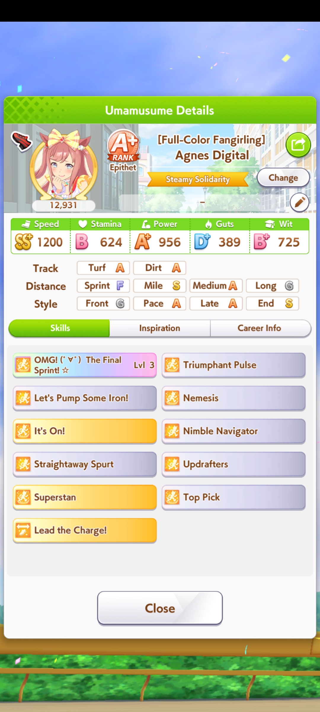 >>5580381562/3 spd, 2/3 wit, Riko. Power/stam sparks.