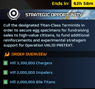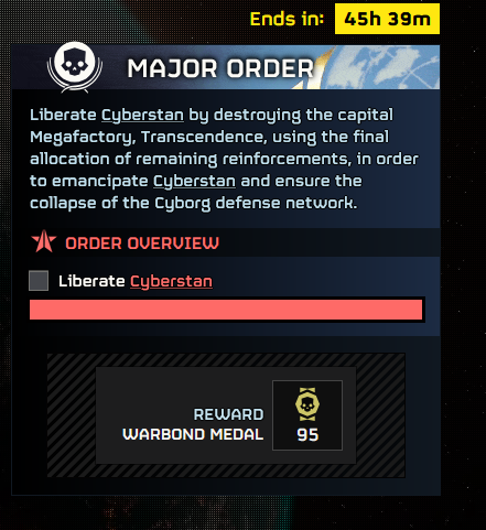 >>558074669>What happened with Cyberstan?Players said "fuck it" when presented with the final city. Devs said "fuck it" and turned on the old orbital bombardment that got removed for being a teamkilling fucktard, handed out nuclear suicide bombs, and we're just killing the reinforcements now.>How does liberation progress get completely frozen?Locations (planets or the cities on those planets) have a "health" bar, depleted by doing objectives. Locations recover a percentage of their health every hour. This means you need a certain amount of damage being done at a certain rate to make forward progress. When you combine a large health bar and a large recovery rate, like on Transcendence, it becomes a fucking brick wall that nobody wants to deal with. Joel regularly uses this to make doing things other than what he wants effectively impossible.
