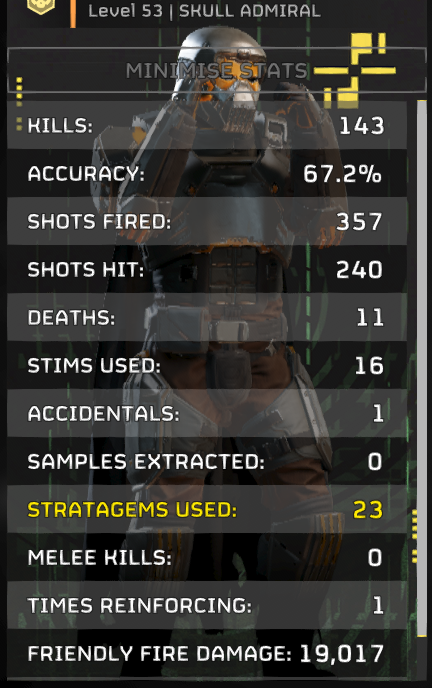 >>558074669IIRC, Chinese hackers were going to guarantee we won the "Successful Extractions" Major Order. So Joel deleted and restarted the Major Order a few times, but the Chinese kept hacking and setting us on track to win.So Joel changed the MO from "Successful Extractions" to "Successful Operations Completed", guaranteeing we lost the MO.Oh yeah and Joel paused MO progress during the hacking, switched it to "Successful Operations Completed" and then went to sleep. Forgetting to unpause progress before leaving the office. So for many hours MO progress was frozen and impossible to increase.The same thing happened to a Side Order too. Joel kept deleting, restarting, and pausing it. It was successful in the end but I don't remember if we even got medals for it.