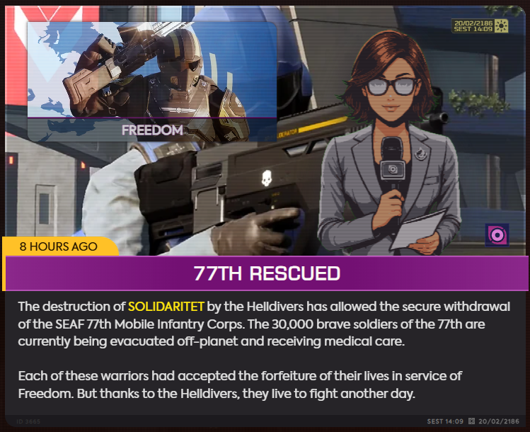 >The SEAF 77th only had 30,000 people in it>While Helldivers die by the millionsA-are we the expendable fodder?