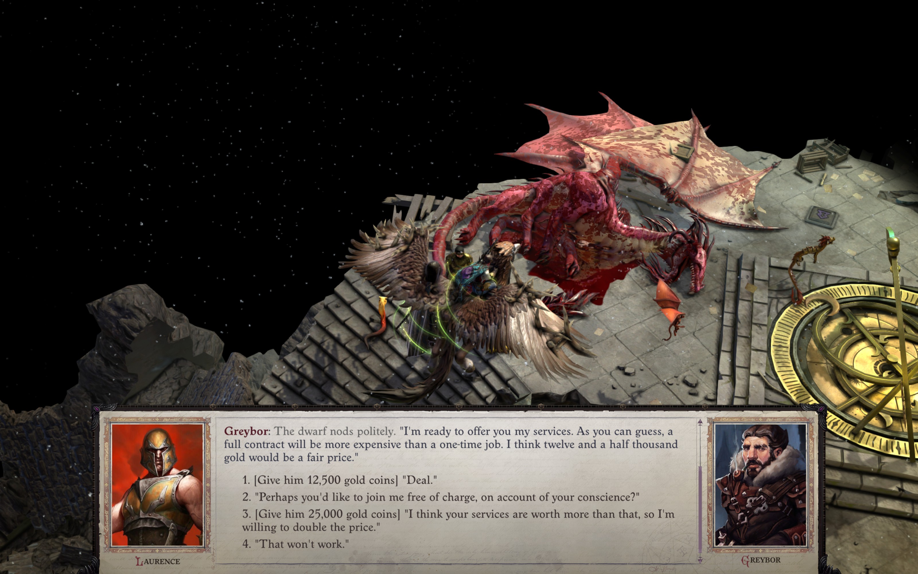 >>558049379If you don't pay him extra, he shows up later on his own to try and kill you and your entire party with no plan or escape route, moment upon which you inevitably instagib him and wonder what the fuck were Owlcat thinking.