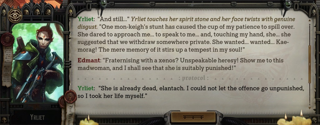 At least Wrath gave you different paths that you actually want to actually take, unlike RT where the objectively best path is Iconoclast and going dogmatic/heretic is just retarded