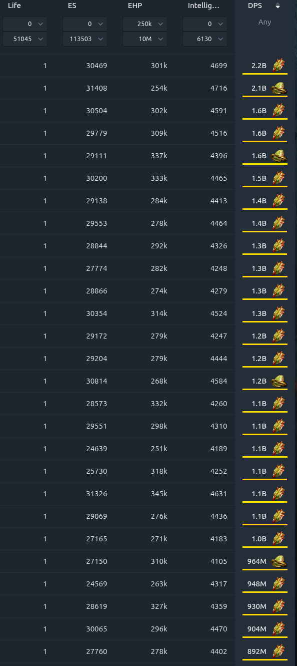 >>558051396>filter by 100k EHP+You'll just get builds that uses a shield or has 200d investment if you do this.
