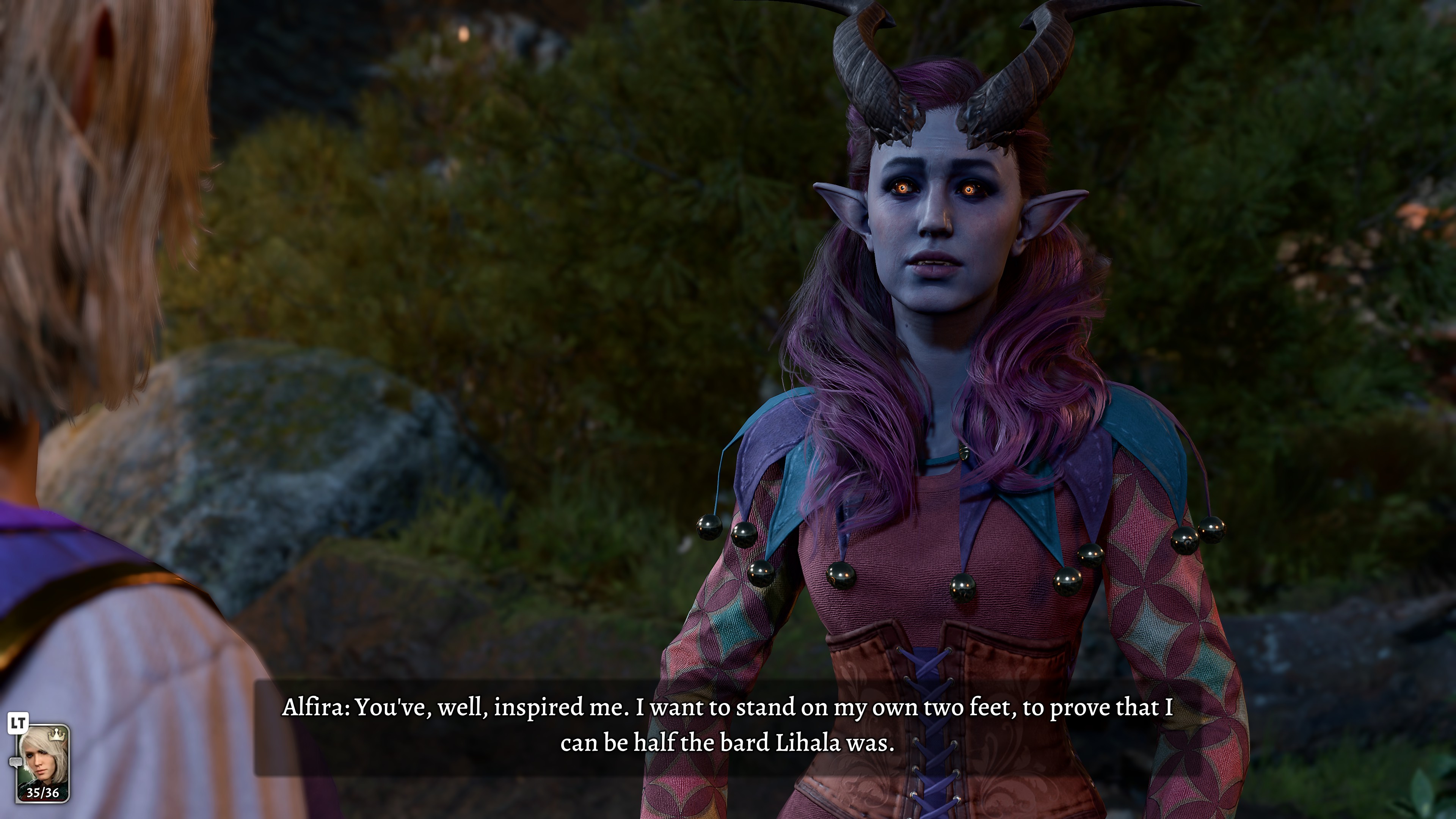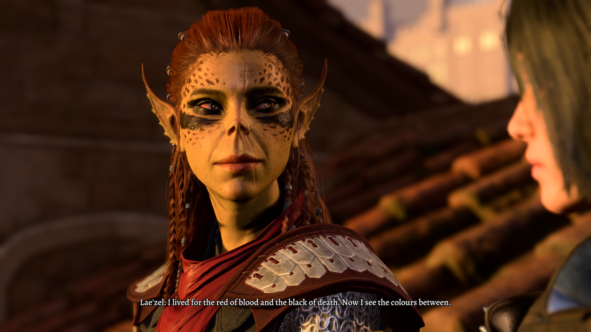 >Lae'zel's bitterness is born of sadness.>She is mourning the loss of the person she once was>and can never be again