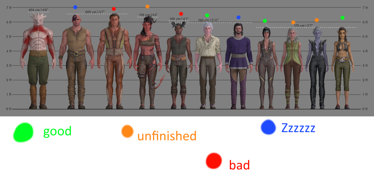 Lizard Sex??? Edition>News:Patch 8: https://baldursgate3.game/news/the-final-patch-new-subclasses-photo-mode-and-cross-play_138Patch 7: https://baldursgate3.game/news/patch-7-now-live_121Patch 6: https://baldursgate3.game/news/patch-6-now-live_108Patch 5: https://baldursgate3.game/news/patch-5-now-live_99>Wiki:https://bg3.wiki>Mods:https://www.nexusmods.com/baldursgate3/>FAQ:>Q: How often should I long rest?>A: Many companion and romance interactions occur when long resting. Some early lower priority camp scenes can also be missed if higher priority ones are queued. To advance companion quests or romances, make sure to long rest often.>Q: Can I recruit Minthara without going down the evil path?>A: If you knock her out in Act 1, yes. You do miss out on the sex scene, but otherwise the romance remains the same.>Q: Underdark or Mountain Pass?>A: Either, or both. It's recommended to clear both on higher difficulties for the experience and loot. Both connect to the same Act 2 map.>Q: Is The Dark Urge essentially "Tav+"?>A: Yes. You get additional content, BUT there are points where, if you've chosen to resist the Urge and/or don't complete quests the "right" way, you'll have to pass additional checks to avoid losing companions.>Q: Are there any consequences to consuming tadpoles?>A: No, for the most part. However if you've consumed any tadpoles, there will later be a DC 21 Wisdom check to reject the Astral-Touched Tadpole, which affects your appearance if consumed.>Q: Should I enable Karmic Dice?>A: Karmic Dice will avoid streaks of low rolls, both for you and the enemy. It is recommended to disable it if you're specializing.>Polls:>Romance: https://strawpoll.com/NMnQ5kJXYn6>Race: https://strawpoll.com/kjn18WPzeyQ>Class: https://strawpoll.com/eNg69DKKjnA>Companions: https://strawpoll.com/bVg8o8l3VnYOP pasta: https://rentry.org/bggpastaPrevious thread: >>557746030