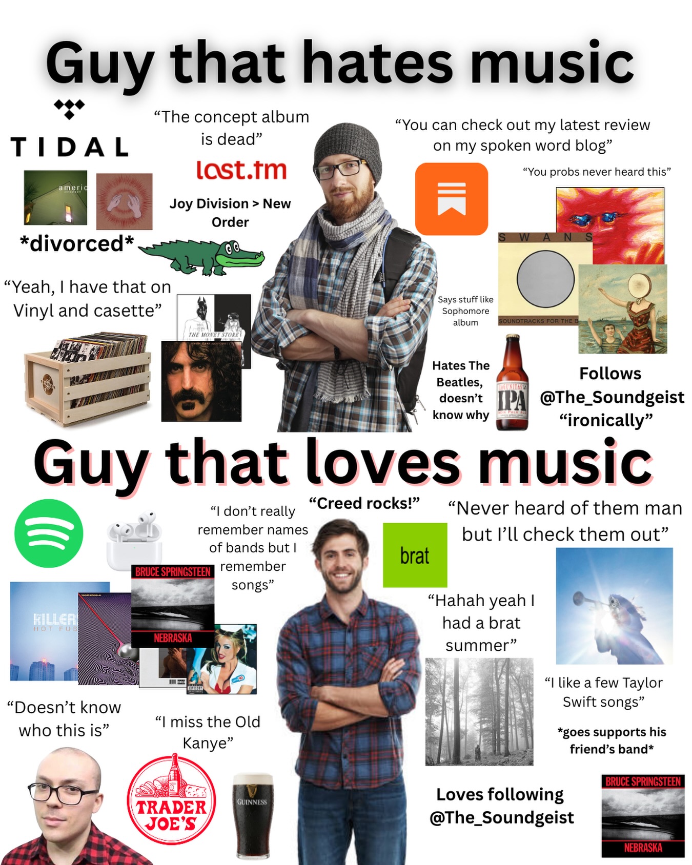 >>558078419>"I like a few Taylor Swift songs"That's how you know the bottom guy is lying about loving music.