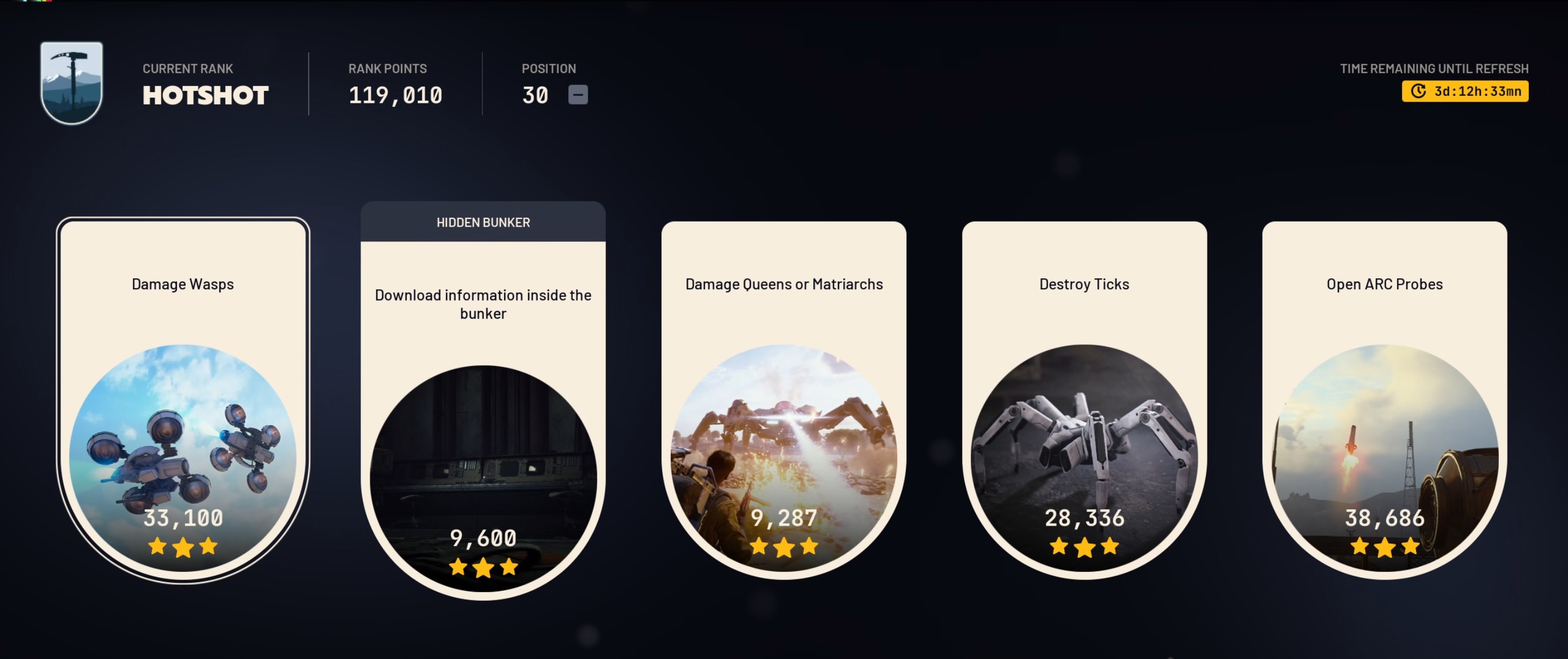 >go for queen/matriarch damage trial>fully kitted bettina + ammo + wolfpacks + seekers>spawn on blue gate>17 minutes left, queen is dead>exfil & requeue>next spawn 19 minutes left, queen is about to pop>requeue>spawn near ancient fort, 29 minutes left>sprint to queen>she's already half-dead, getting lazered and shelled at from 4 hillsthank you embark, very cool
