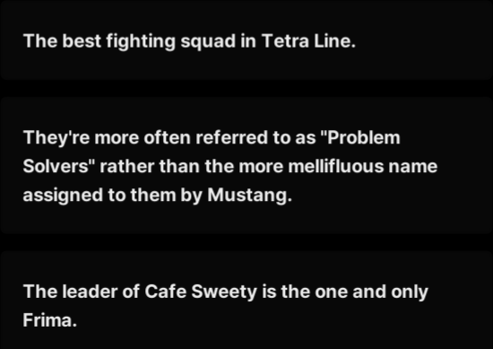 >>558144892sugar and milk didn't want to bother so frima became it by defaultoften frima invokes being leader to get her way, happens once or twice in the event too