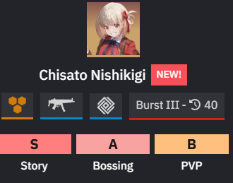 >Game Download - Android/iOS/PChttps://nikke-en.com/index.html>General Info/FAQ for New Playershttps://rentry.org/NikkeInfo>Additional Linkshttps://rentry.org/nikghomeALL DATES/TIMES LISTED BELOW ARE UTC+9 (KOREA TIME)>Update on February 12https://nikke-en.com/newsdetail.html?col_name=&sid=&content_id=4fb0d316a02f2a4c62a89cfaddc22ca30853>Developer's Note: January 2025https://nikke-en.com/newsdetail.html?content_id=4e97e053a5501a40a3ab73ca13978b6f65da>Current EventsLycoris Recoil Collab - February 12 ~ March 12Co-Op: Gatekeeper - February 20 ~ February 22Solo Raid: Altruia - February 19 ~ February 26>Upcoming Events->Current Special RecruitsChisato Nishikigi - February 12 ~ March 12Takina Inoue - February 19 ~ March 12>Upcoming Special Recruits->Current Costume PassesVelvet: Sensual Rabbit [Mission Pass] - February 1 ~ February 28Chisato Nishikigi: Red Spark Guitar [Mission Pass] - February 12 ~ March 12Takina Inoue: Blue Pulse Bass [Mission Pass] - February 19 ~ March 12Mast Romantic Maid: Tea Service [Costume Gacha] - February 12 ~ March 12>Upcoming Costume PassesZwei: Spring Stroll [Mission Pass] - March 1 ~ March 31>CodesMILLIONCOMMANDERSPrevious:>>558052387