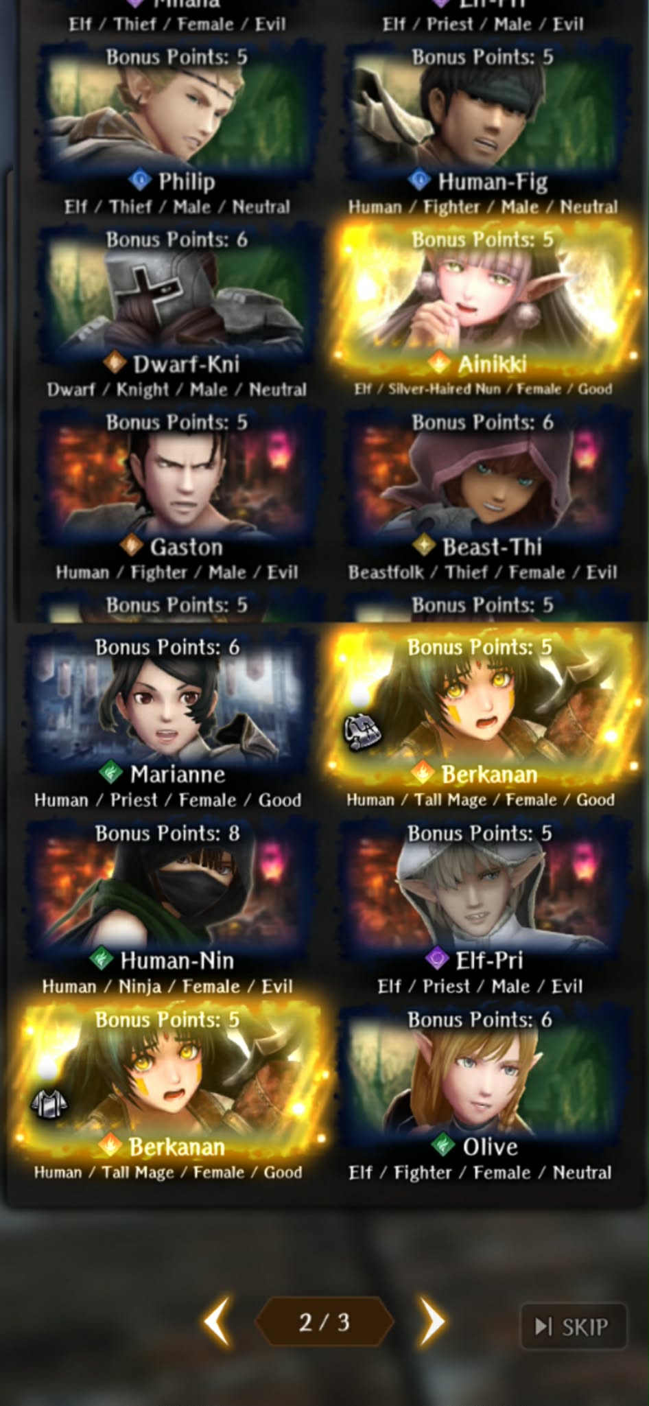 Priests in the Back Edition>Current Featured Adventurer Banners:[Collab] Saintess from the North, Ainikki - until 3/25[Collab] Challenger Still in Training, Berkanan - until 3/25Flameblade of Revolt, Yoizou - until 2/25>Current Reminiscence Adventurer Banners:[Collab] Otherworld Adventurers Iarumas and Berkanan - until 3/25Golden Beast Dancing Maiden - until 3/4>Wizardry Variants is available on Android and Steam:https://store.steampowered.com/app/2379740/Wizardry_Variants_Daphne/https://play.google.com/store/apps/details?id=jp.co.drecom.wizardry.daphne>Current Events/New Content:[Free Gems] 200 gem code in webstore - YJseQZA8dJ[Free Gems] COLLAB LIMITED TIME 200 gem code in webstore MZEC3xP4fG[New Reclass] Samurai MC[Bounties] 7 new bounty missions[Mission Pass] Night run - free tags - until 2/25[XP Dolls] weekly - until 2/28 [Mission Pass] B&B collab x3 - until 3/25[New Mission] B&B Otherworld Adventurer - Master of the Depths - until 3/25[Exchange] Otherworld Adventurer II - until 4/1FREE 800 Gems of Org (one time) + 50 per week on their official web currency store: store.wizardry.info[Japanese VPN only] ANOTHER FREE 800 Gems of Org (one time) + 50 per week: webstore.wizardry.info/product>Fanguides:https://wizardry.fasterthoughts.io/ - (EN)https://gamerch.com/wizardry-daphne/ - (JP)>General Information:https://rentry.org/x5xxitrz>Tavern/Camp choices:https://rentry.org/2gngvv2n>Friend Code:https://rentry.org/SavoryRisk>I.V checker and Other Stat Calculators:https://wizardry-daphne.mcwild.net/init_status/>Official Twitterhttps://xcancel.com/wizardry_daphnehttps://xcancel.com/Wiz_Daphne_en>In-depth Gacha Rateshttps://wizardry.info/daphne/gacha_rates/en/characters.htmlhttps://wizardry.info/daphne/gacha_rates/en/equipments.htmlPrevious thread: >>557956084