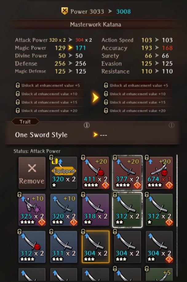 >>558144537The Refined Saber looks pretty bad except as an intermediary option while you acquire better ones. They didn't buff the passive effect on it at all, so while the Saber was mostly competitive with the Ebonsteel Katana, with the +30 Attack and +25 Accuracy Passive, it falls off versus the raw stats silver weapons gained, so the Refined Saber can't keep up unless it grows weirdly, since you're losing more a lot more Mag than you gain in Attack.My 60 Shiou with a white +0 Refined Saber>204 Attack>172 Magwith a white +0 basic Silver Katana>198 Attack>214 MagSo if you already have a bunch of good Silver quality katanas, I'd ignore them entirely.Fasterthoughts does have its +20 stats listed, but I'd take it with a grain of salt since they have completely wrong stats listed for the Snow Oni Yoto.
