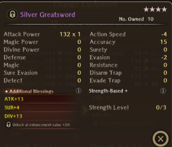 >>558149025It has 12 attack less than a regular silver greatsword, but is otherwise identical.It's negligible.