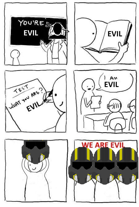 I see people taking this games lore way too seriously, lemme just set the record straight. Super Earth is evil, like Actually evil. I know its crazy, but bear with me. They are every single authoritarian regime trope rolled into one satirical caricature of a government. The game cannot stop screaming in your face just how evil they are. The only people who cannot read the satire are autists, which compromise a large portion of the playerbase (as well as Arrowhead themselves). Every single problem, every enemy faction...is caused by Super Earths shenanigans.Now (you), the player, the Helldiver...are NOT evil. You are simply a soldier -a grunt, one might say- fighting to spread Freedom and Democracy to those in need. Helldivers, and by extension (you), are good people who more often than not, do the right thing. Its just that you also fight for a very evil government.