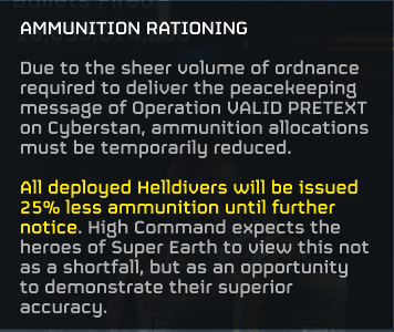 >>5581173394/10 Liberation rate tied to player count feels bad. It saps you will to participate when 100k players are in one planet and you have 1.1% liberation going on. Hulk surge and first few planets were fun and good. Then when it came time for Aurora bay. Things got off the rails. It was horible and longer it went. More horible it got. In cyberstan. New enemies and maps are fun. Little bit too many voxes. Fact that cyborg capital had nothing new in it was massive let down. You build up this March to one location and it's excatly same as last week of game. It's insane. 1 new enemy. New objectives. Even cyborg dog would be enough.