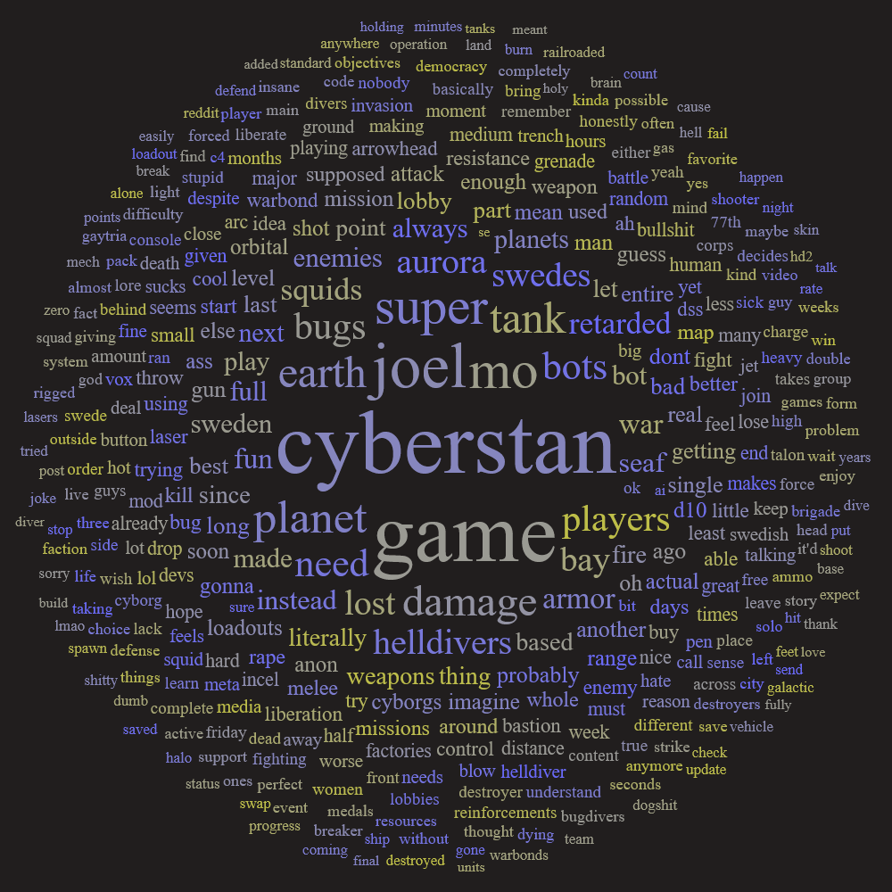 >>558112696The vibes wave, where the playerbase is playing only for fun and not to complete a Major Order. I find it disgusting.