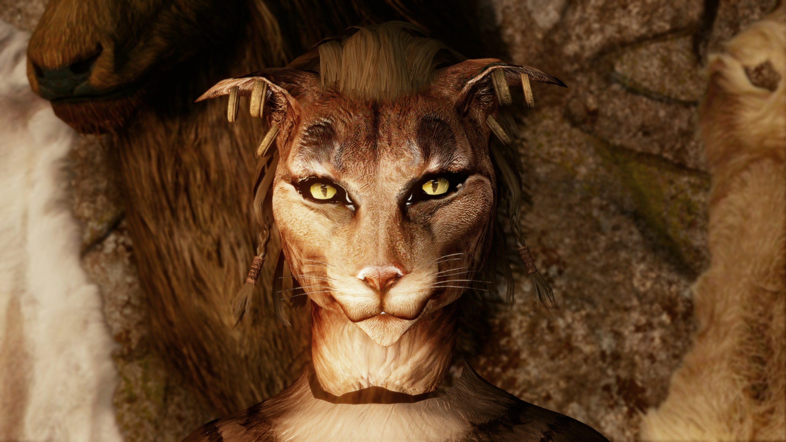 >>558121858I think Khajiit are supposed to have some neck fluff normally for covering that, and it looks missing for you