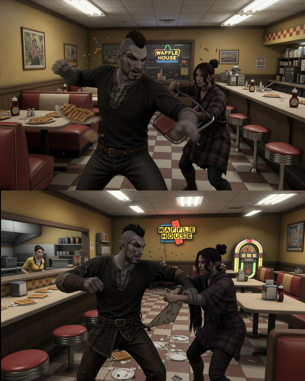 >>558195276>>558195551In every shitpost i've ever generated with those two it always gives him the gray skin and her the generic elf treatment and I don't know why. I even specify that they're both dark elves in the prompt. If I try to do a video it tells me either: "sorry I can't do that" or an error. I'm okay with the generic anime elf though she still a cute, i'll leave the actual videos to whoever wants to make them because I guess i'm just a dumb morrowboomer in the eyes of technology