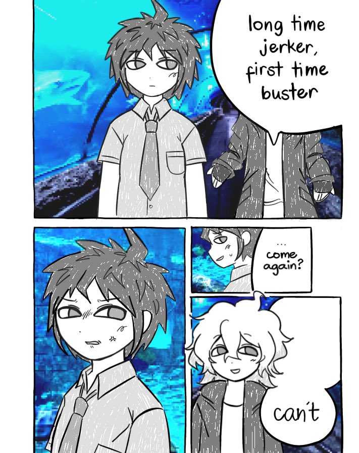 >>558166029Hajime understands perfectly well the implications of what Nagito says with the despair disease. He leaves because he still feels betrayed by Nagito after trial 1 and can't accept that he would love him. Similar behaviour to him leaving tied up Nagito in chapter 2.