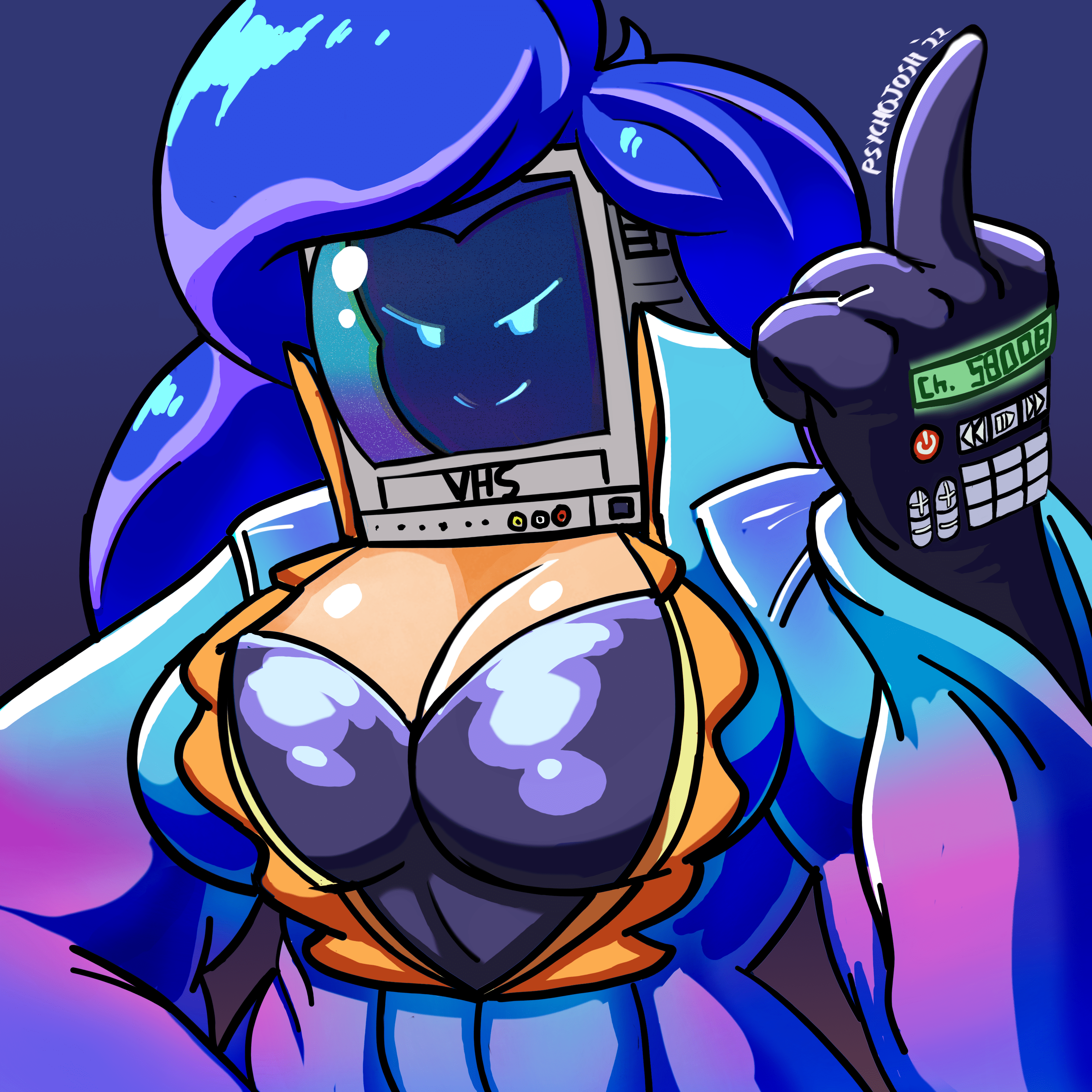 Haven't been able to sleep. Not really feeling tired. Just been drawing.So this is Mayuri. She's a protagonist in GigaMaidens. She is a promiscuous magical superheroine and wields a halberd axe but she has one and a half doctorates (had to abandon the second one midway to prevent tartareans from endangering people she cared about). At least one of her professions is psychology. She'll shrink you.