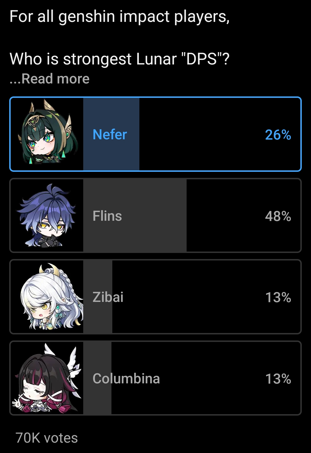 >>558136063I still haven't picked this rounds... I was hoping we'd have news of Liyue buffs or something