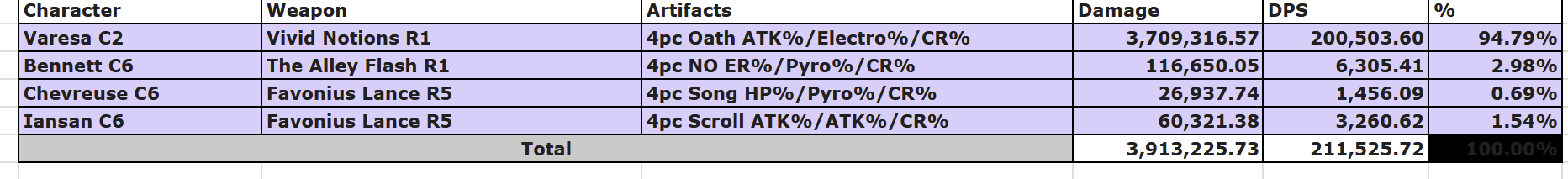>>558135539Varesa is also gaming the system. 2 R5 lances and C6 Bennet which only works on a combat dummy.
