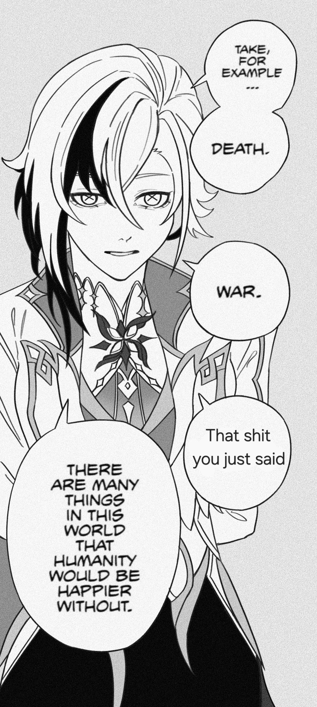 >>558150057I wasn't talking about being in a romantic relationship. I was talking about him feeling distance from humanity, which is something you would understand if you actually paid attention during the archon quest and his story quest.