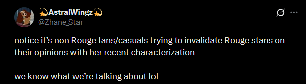 >>558203410Rouge is for Batman.