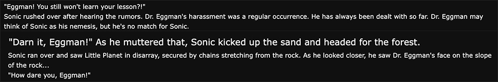 >>5582444262011 story, final chapter. Eggman charges enough of the Eclipse cannon to be at 0.5% of power, "it can destroy an entire city" he says, but Silver blocks it