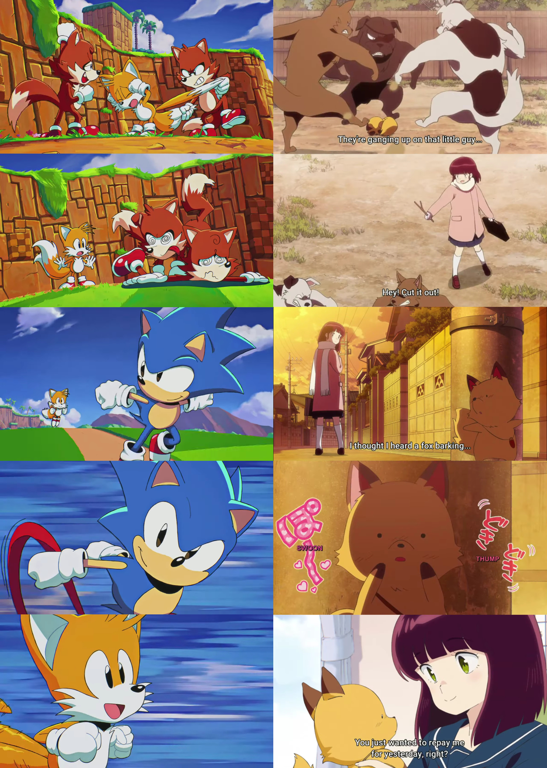 Tails's backstory is based on Urusei Yatsura. The fox that falls in love with the girl that saves him from bullies.