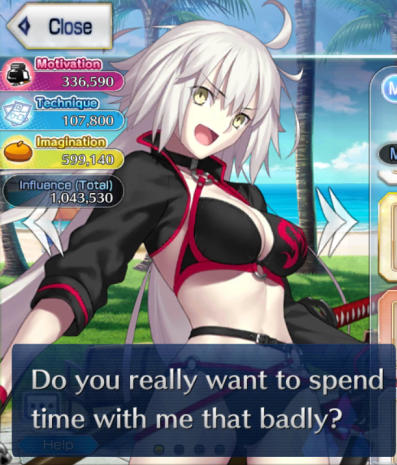 >>558340658Leveling up early game can be an absolute pain.You need mats. Lots of them. And instead of farming them, it's a lot easier to farm event currency and buy mats from the event shop.Next - instead of the standard mystic code, try to unlock the Combat Uniform (aka Plugsuit). It's third skill is really useful.Now for this specific fight - you have a pillar and a Caster. If you want your own dps to beat the fight then your best bet might be Rider (Medusa). Borrow a support for her (best option would be Skadi Ruler). Run a comp with Medusa, Waver, Hans and then the friend support. After popping the buffs from Hans, use skill 3 of the plugsuit to swap him with the support. You should easily be able to clear it in 3 turns or less. (1 turn if you get lucky with card crits)If you don't mind using friend dps, just pick one with a suitable anti-trait like from pic related.