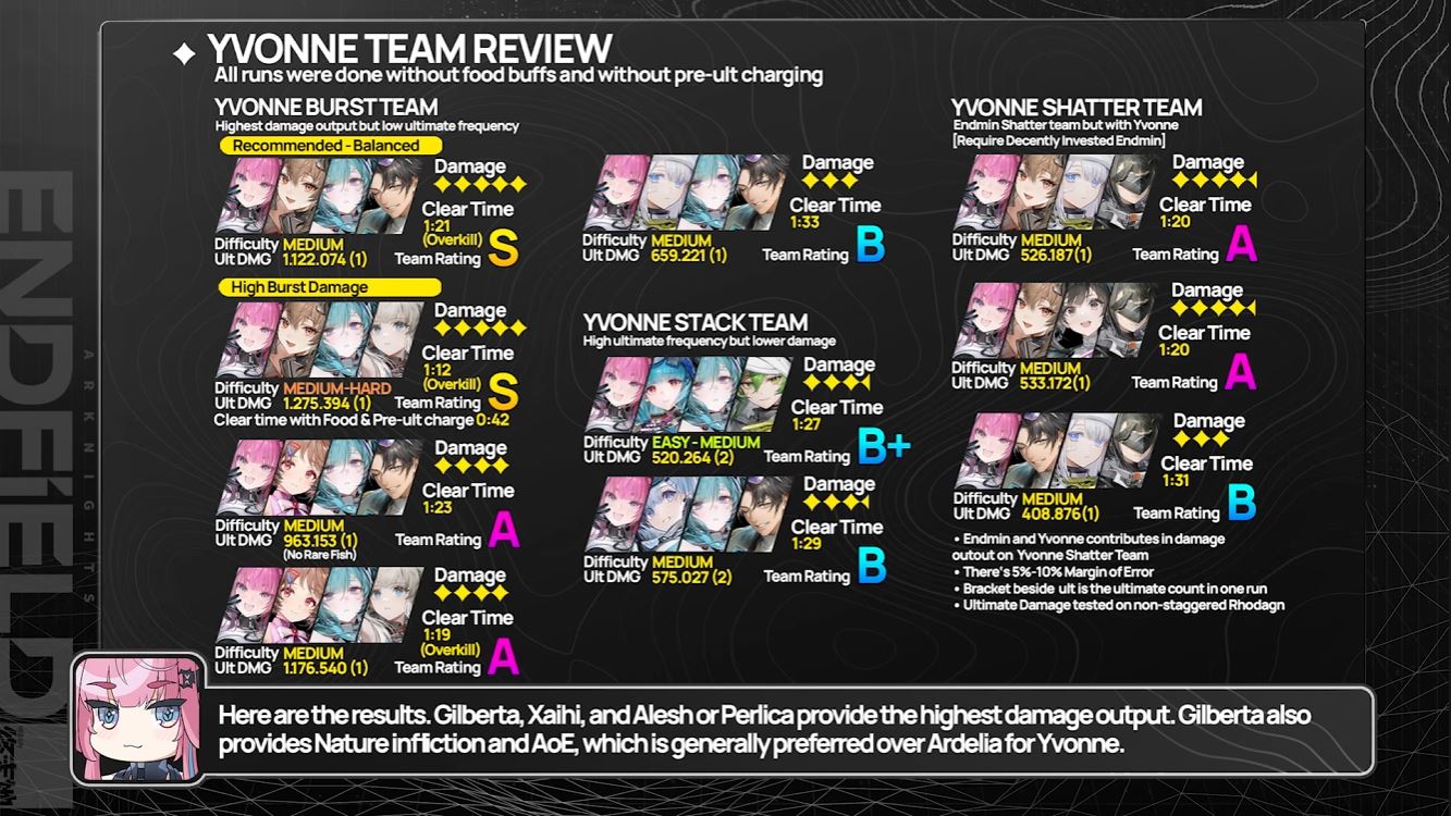 What's your guys' opinion on Yvonne's best team? This vid is pretty good, but they didn't test team Yvonne/Gilberta/Xaihi/Last Rite team that's supposedly very strong as well?https://youtu.be/0BnJNeUP2oA