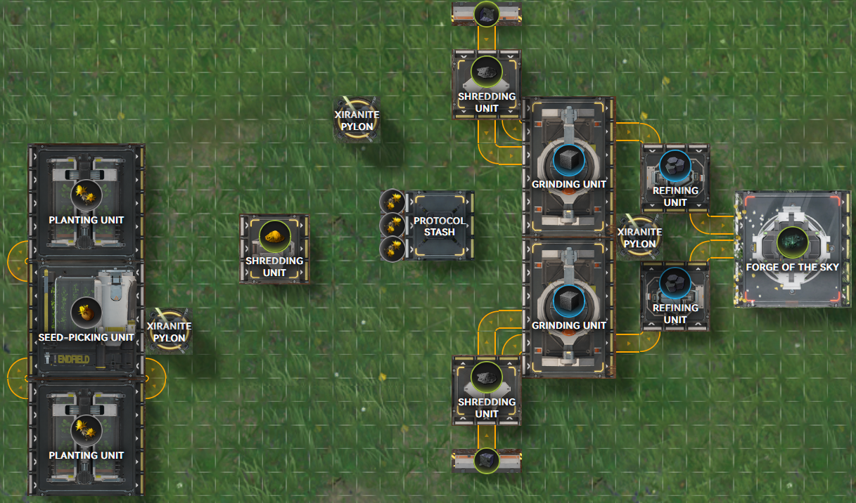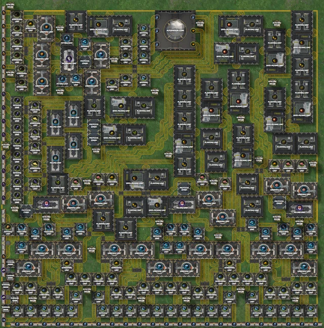 >>558215559Am I the only one wondering why you'd put the sandleaf farms right next to the grinders, then just use a protocol stash anyway and route it through the bus? That feels like a baffling decision to me, when you have, like, a third of the field clear anyway. For that matter, why are the lower left farms blocking off valuable bus space for negligible value??? Who designed this thing? Wait, are they doing the same in the midleft as well, or am I misreading this layout?...Anyways, sorry anon, I'm straining my eyes too much trying to figure out what's going on. Someone else will have to offer actual help instead of just scoffing at some modest flaws.