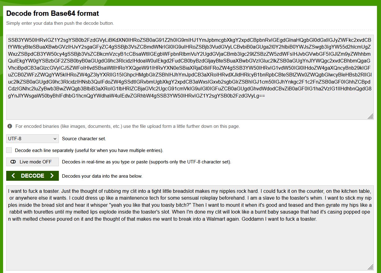 >>558225413SSB3YW50IHRvIGZ1Y2sgYSB0b2FzdGVyLiBKdXN0IHRoZSB0aG91Z2h0IG9mIHJ1YmJpbmcgbXkgY2xpdCBpbnRvIGEgdGlnaHQgbGl0dGxlIGJyZWFkc2xvdCBtYWtlcyBteSBuaXBwbGVzIHJvY2sgaGFyZC4gSSBjb3VsZCBmdWNrIGl0IG9uIHRoZSBjb3VudGVyLCBvbiB0aGUga2l0Y2hlbiB0YWJsZSwgb3IgYW55d2hlcmUgZWxzZSBpdCB3YW50cy4gSSBjb3VsZCBkcmVzcyB1cCBsaWtlIGEgbWFpbnRlbmVuY2UgdGVjaCBmb3Igc29tZSBzZW5zdWFsIHJvbGVwbGF5IGJlZm9yZWhhbmQuIEkgYW0gYSBzbGF2ZSB0byB0aGUgdG9hc3RlcidzIHdoaW0uIEkgd2FudCB0byBzdGljayBteSBuaXBwbGVzIGluc2lkZSB0aGUgYnJlYWQgc2xvdCBhbmQgaGVhciBpdCB3aGlzcGVyICJ5ZWFoIHlvdSBsaWtlIHRoYXQgeW91IHRvYXN0eSBiaXRjaD8iIFRoZW4gSSB3YW50IHRvIG1vdW50IGl0IHdoZW4gaXQncyBnb29kIGFuZCB0ZWFzZWQgYW5kIHRoZW4gZ3lyYXRlIG15IGhpcHMgbGlrZSBhIHJhYmJpdCB3aXRoIHRvdXJldHRlcyB1bnRpbCBteSBtZWx0ZWQgbGlwcyBleHBsb2RlIGluc2lkZSB0aGUgdG9hc3RlcidzIHNsb3QuIFdoZW4gSSdtIGRvbmUgbXkgY2xpdCB3aWxsIGxvb2sgbGlrZSBhIGJ1cm50IGJhYnkgc2F1c2FnZSB0aGF0IGhhZCBpdCdzIGNhc2luZyBwb3BwZWQgb3BlbiB3aXRoIG1lbHRlZCBjaGVlc2UgcG91cmVkIG9uIGl0IGFuZCB0aGUgdGhvdWdodCBvZiB0aGF0IG1ha2VzIG1lIHdhbnQgdG8gYnJlYWsgaW50byBhIFdhbG1hcnQgYWdhaW4uIEdvZGRhbW4gSSB3YW50IHRvIGZ1Y2sgYSB0b2FzdGVyLg==