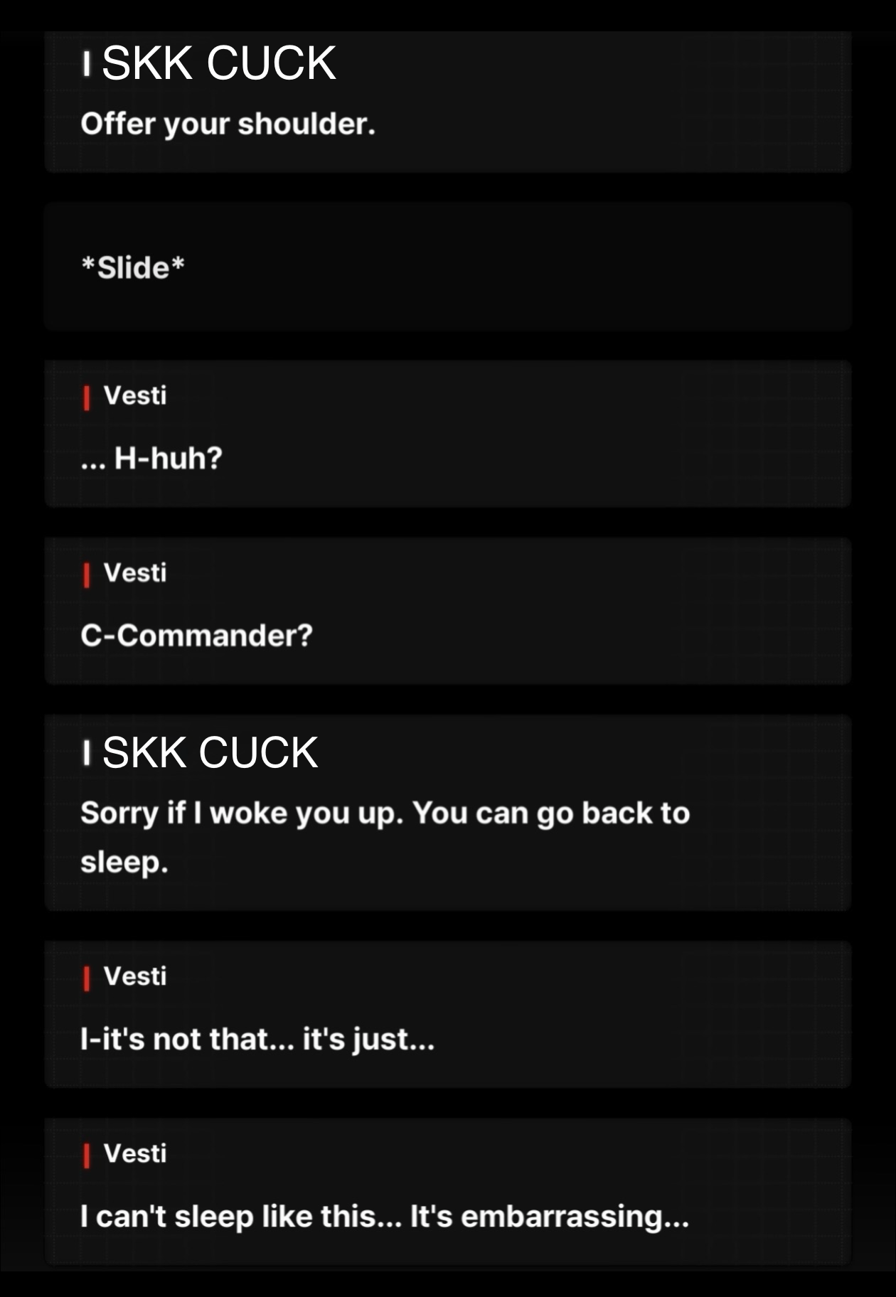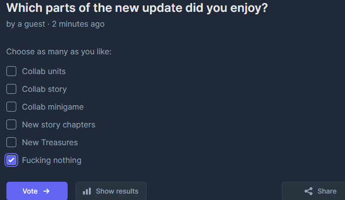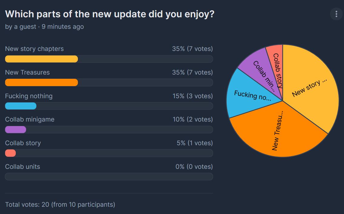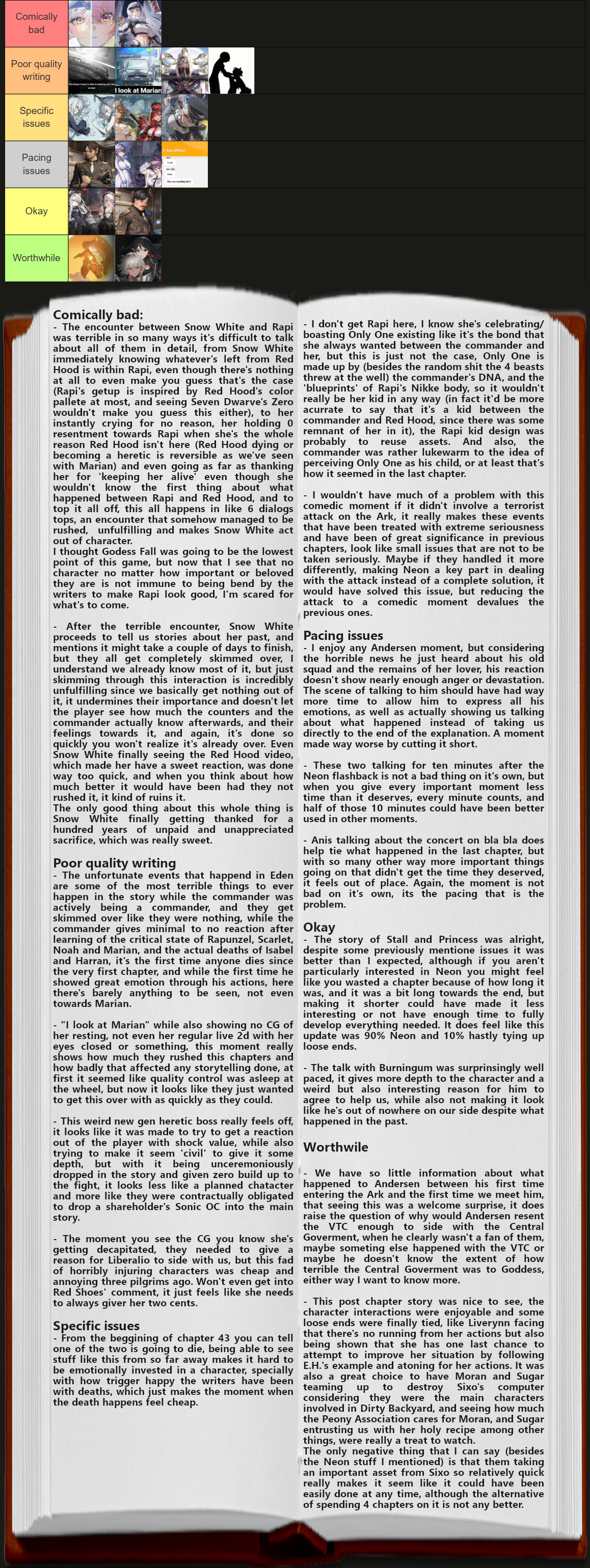 True. You know how there's that part of the survey that asks what you want to see more of, and it's questions like reports about Commanders, Overspecs, Pilgrims, CEOs, etc? They never asked us if we were interested in irrelevant characters like Nora, just to tell a story, when a more interesting story about Nikkes was right in front of us. It's like they really didn't give a damn at all. Like why even ask what people are interested in if on the biggest holiday season you completely fuck it up?