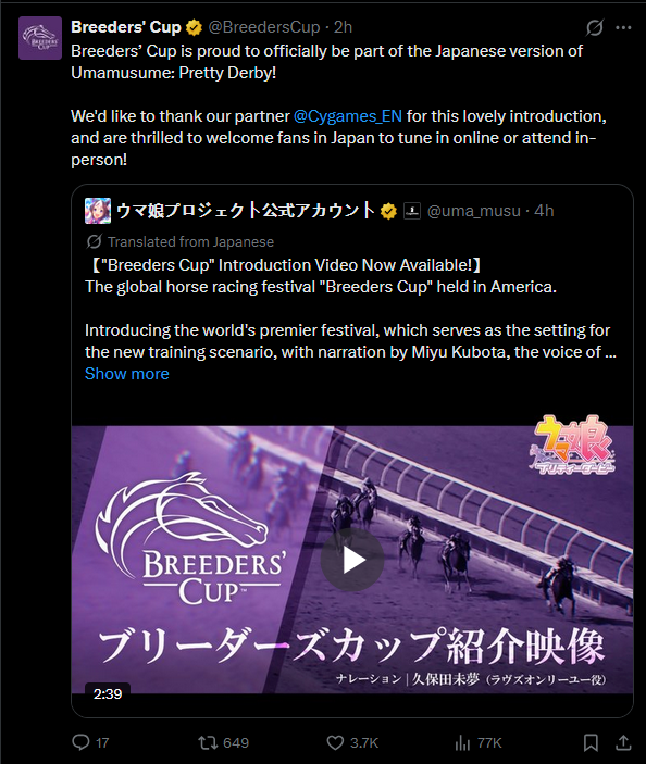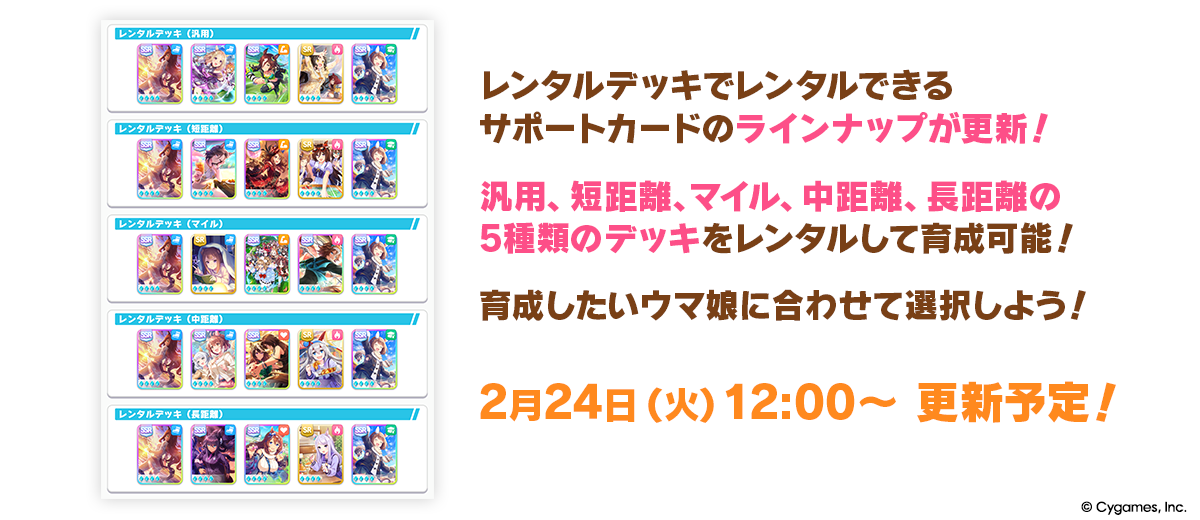 Previous: >>558238080>Global Game NewsLink your account to Cygames iDCurrent Scenario: Aoharu Hai aka "Unity Cup"Current Rate Up Trainee: Mihono Bourbon (3* alt), Eishin Flash (3* alt)Current Rate Up Support Cards: SSR Nishino Flower (Wit), SSR Sakura Bakushin O (Guts)Current CM: Aquarius Cup - Tokyo Turf 1600mMain Story Chapter 5 is out02/18 - 03/01 - Valentine Bourbon & Valentine Flash 3*+Nishino SSR+Bakushin SSR02/18 - 03/01 - The Peak of ConfectionEarly March - Aquarius Cup - Tokyo Turf 1600m Left-handed / Winter / Sunny / Firmhttps://umamusume.com/news/100040/https://pages.snep.pw/uma/anni-skill-changes/>JP Game NewsCurrent Rate Up: Royce & Royce (2*)New Scenario "Yukoma Hot Spring" releasedTimeline: https://uma.moe/timelineCygames Webstore: https://webstore.cygames.com/en/umamusume_en/>Thread Clubshttps://rentry.co/umaglobalclublistYou must be E3 (20k points) to join a circle. Apply with /uma/ or /vg/ in your profile or post ID in the thread.>All Guides & Resourceshttps://rentry.org/uma26Game databasehttps://gametora.com/umamusume (Click the gear to switch between JP / global server info)A basic guide for newfagshttps://rentry.org/umaglobalFind networks if your region is blocked from the game or clienthttps://www.umavpn.top/93Seiyuu & Concertshttps://rentry.org/umstUmamusume Birthday Calendarhttps://ウマ娘.攻略.tools/events/birthdayUma Texthttps://umareader.idsmile.xyz/