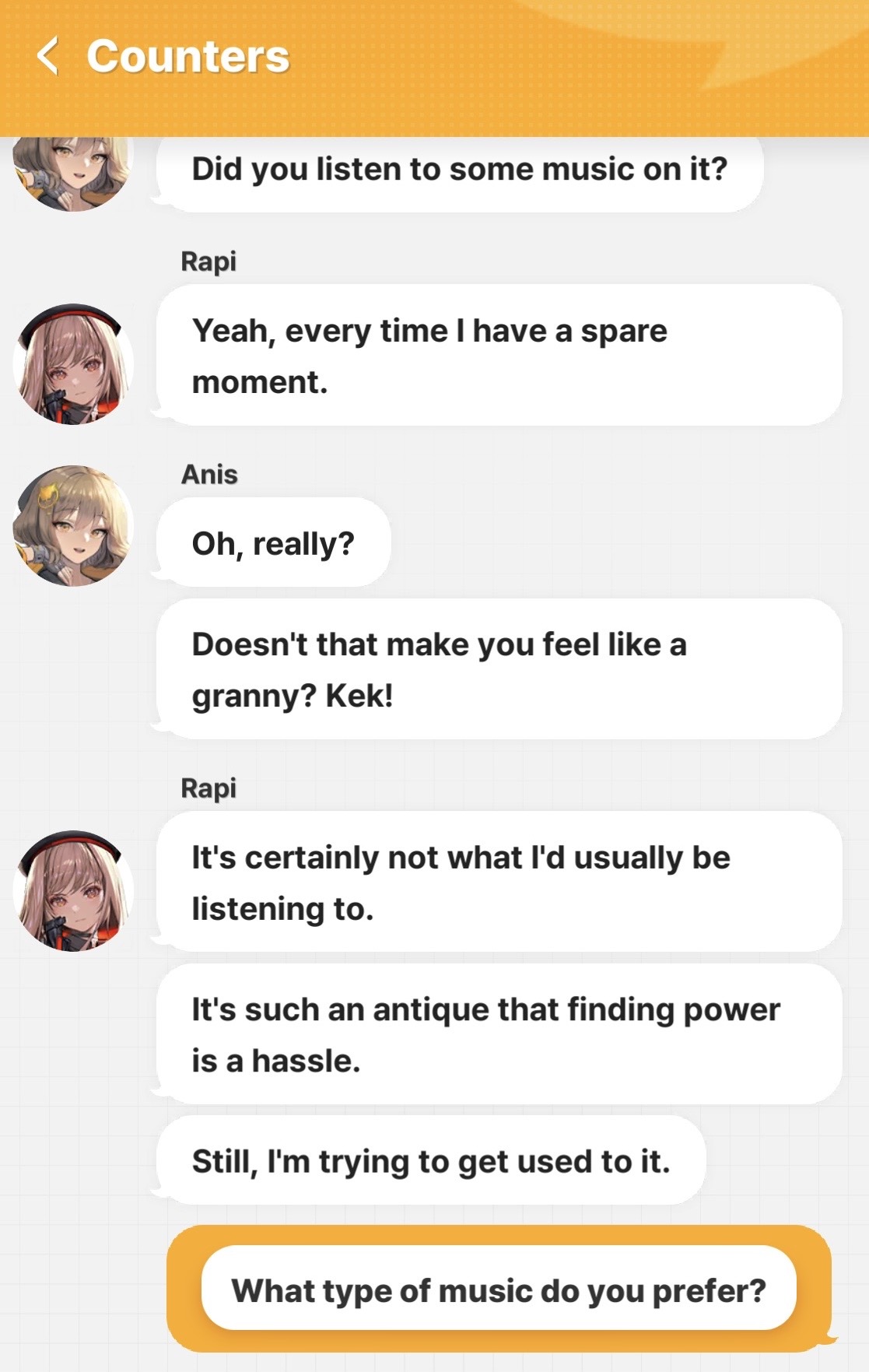 >>558298331this got meIngrid telling Guillotine to fuck off mid chuuni monologue during the Rapi skin event got one out of me, especially since she just sobs and instantly leaves