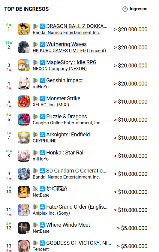 >top de ingresos