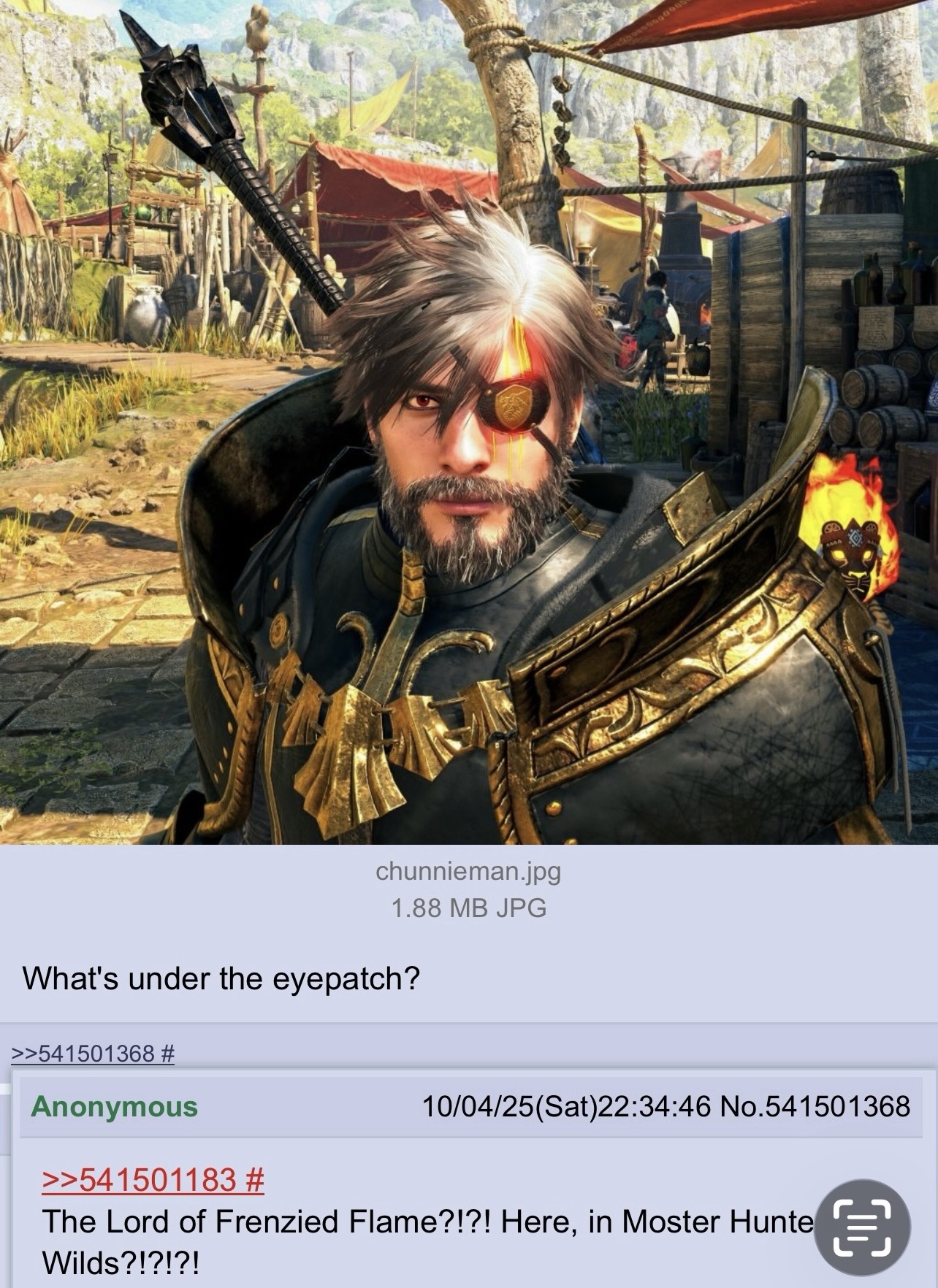 Well well, fine anons of /mhg/, as this thread draws to a close, I think it is important that we take a look back on our activities these last 15 hours and reflect. Take a scroll up memory lane and think about the highs and the lows; those things we wish to take with us into the next thread and those that we would really rather forget. It is time for the THREAD RECAPContinuing his rant from the last thread, the anon who hates instant ramen rages against the upcoming collab, and sparks a food-related argument about the dangers of carbslopAnon tries to play a game of guess the monster, which immediately falls on its face (the monster was Great Baggi)The squad remains fullIchinose is devoted to mocap actorThe group photo is reposted and blacklists everywhere are meticulously updatedAnax gets sloppad once againNewfriend thinks that Mina is real and gets mercilessly snubbed by an NPCDoj melty (free space) Anons reminisce over hard-working palico chefs from previous titles and forgive them for giving negative buffsAyako posts smut and is defeated by the ghoulposters, then gets trampled by a hyperspeed ChatacabraAnons wish for a comfy village in the next title and volunteer suggestions for themeAT Ark triggers a discussion of weapon balance and GS/CB mains lament his multihits and the increased aggression of newer monsters. Others claim that this is nothing new and offer the usual timeless advice.Anon searches the future and finds himself playing monster hunter in a nursing homeRuri times out on Proof of a Hero and is kindly encouraged by generous citizens of the threadWilds has no himecut hairstyle and anon has a trembling meltdown as his delicate mind is warped by the traumaWas it a good thread? Well, is it ever? The best we can do is take with us these lessons and proceed bravely into this fresh world of possibility!