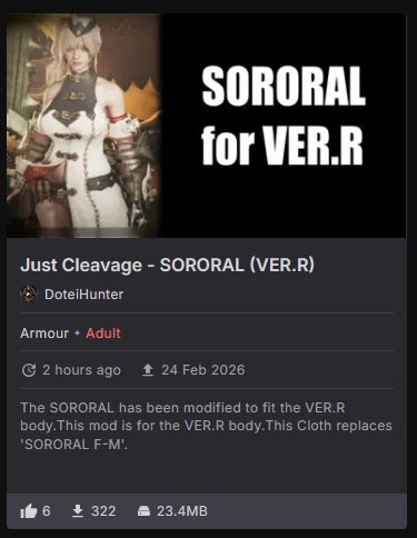 >>558369154>>558368320I just started. So Ver.R body is what everyone uses? Is it all barbie titty monsters/gooner bait incan fertility goddess proportioned bimbo shit or are there multiple body types? Does it get broken by updates frequently/easily? Is there a full armor fit conversion yet or is it still not fully supporting everything in the game?