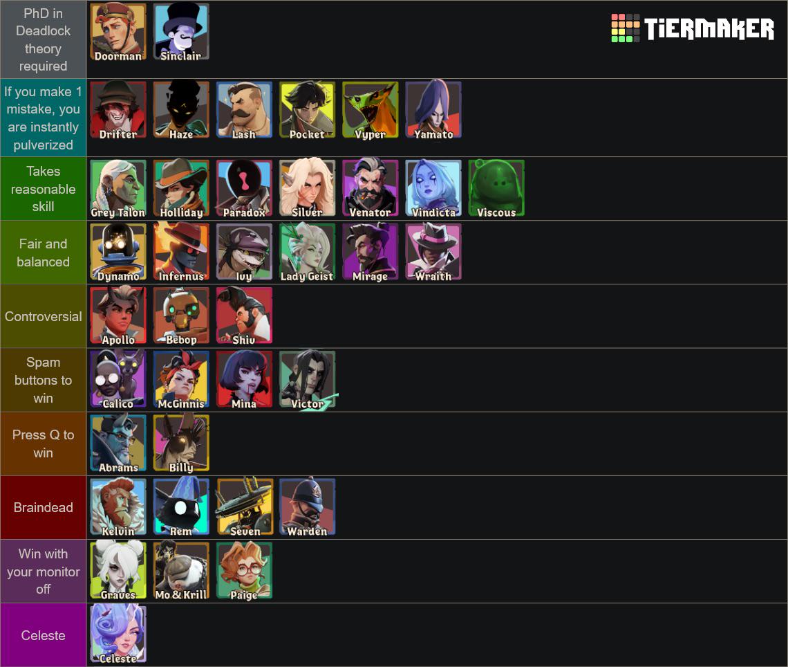 >Pretty much every single topranked E6 streamer is only playing new heroesI feel like this batch has been a success of character design but a failure of keeping powercreep in check/reasonably restrained. Graves is the only one not being spammed because of how obviously she's been nerfed into irrelevance. Every top rank lobby is nonstop Celeste Apollo Venator Silver and some Rem
