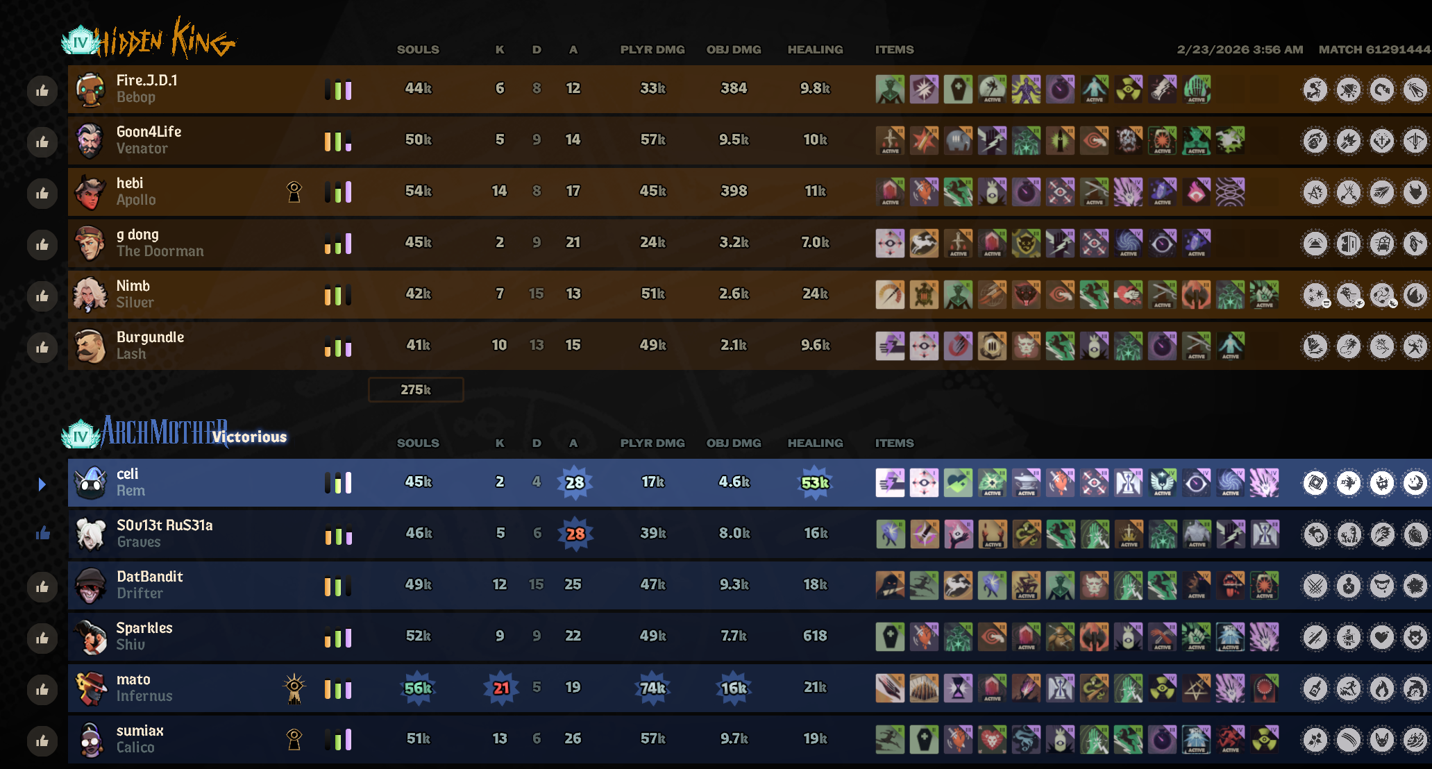 >>558342316Absolute nightmare team composition.>Graves>Warden>Drifter>Celeste>Victor>RemHad the misfortune to play against this, Drifter and Graves sat in side lines, with Rem buffed winions and the rest of their team roamed as a gank squad and got Drifter fed as shit.