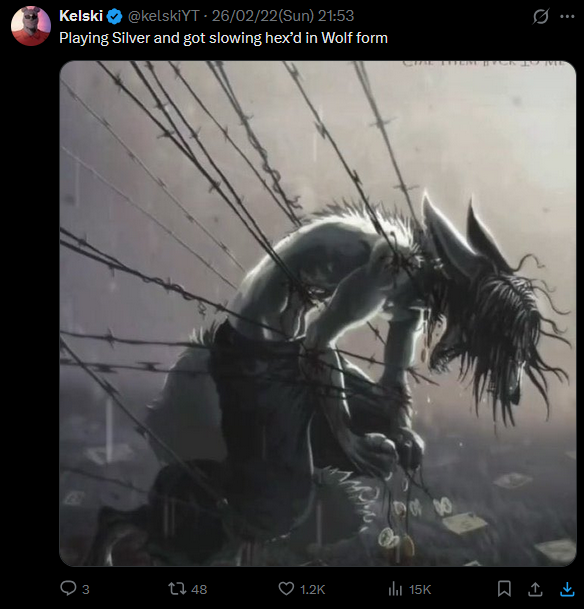 >>558314204Be an aimlet so you can never get into wolf form or do your main source of burst damage in human form