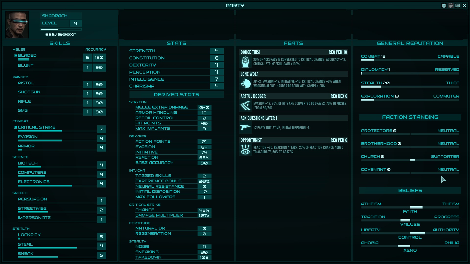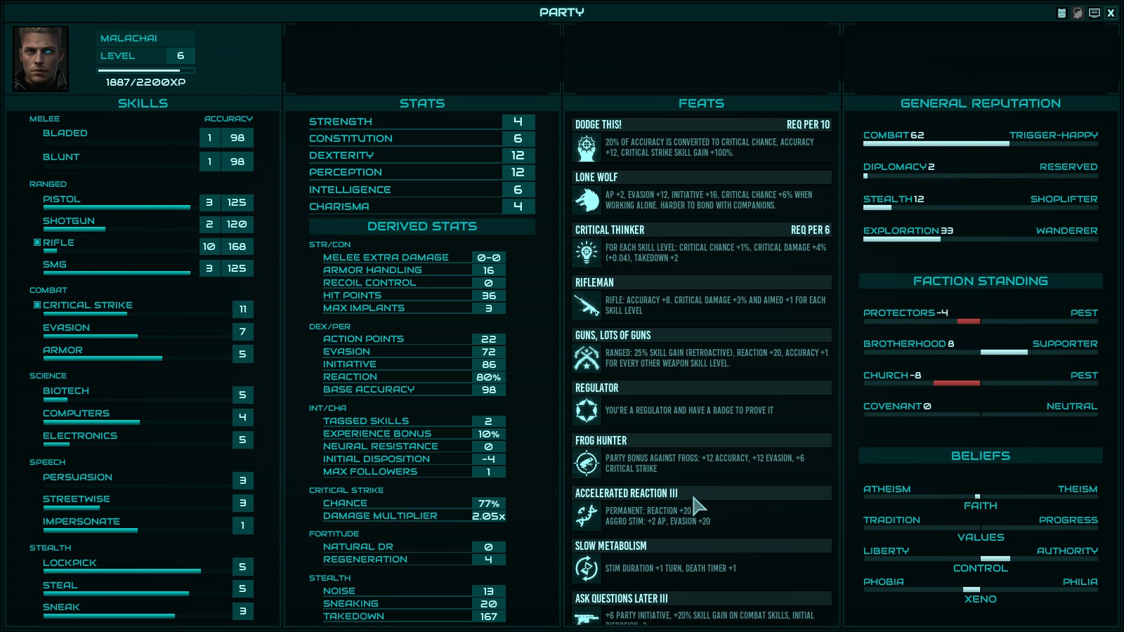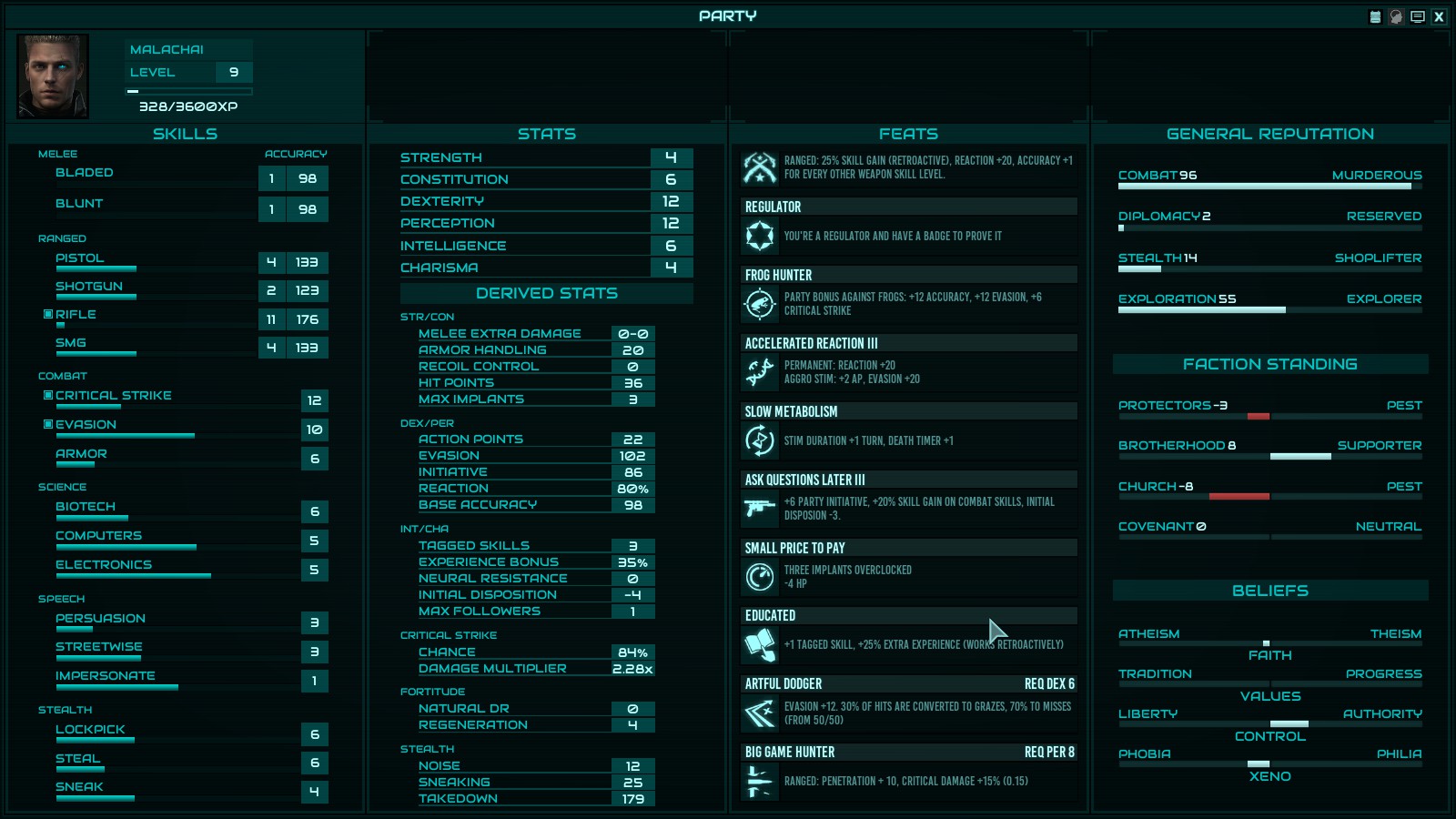 >try to solo Colony Ship>character can't hit the side of a barn from point-blank range>constantly getting critically hit by fucking frogsOh fuck this. Experience from roguelikes has taught me to notice when a character is cursed and this cunt is cursed.