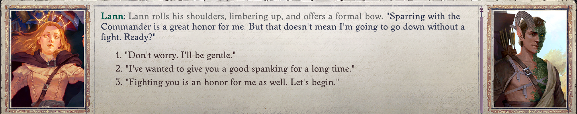 >>558344575Pathfinder Wrath of the Righteous if you romance Camellia.