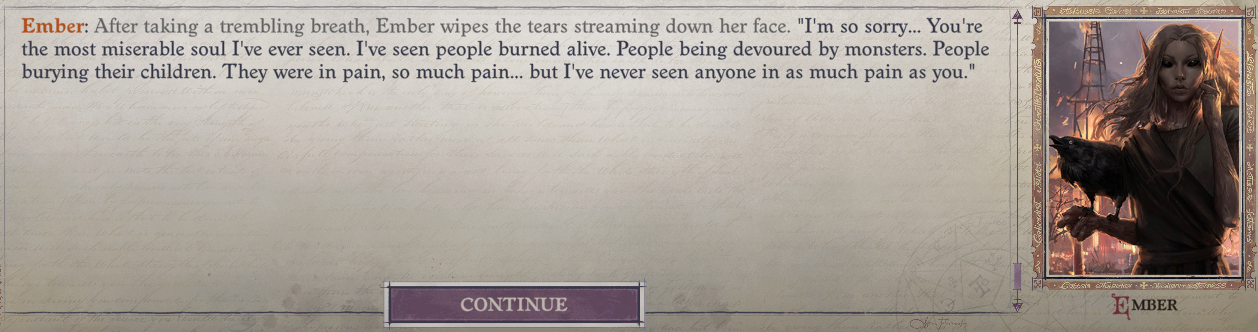 Demon Blood Edition >What is /crpgg/?This general is dedicated to the discussion of computer role playing games such as:Arcanum, ATOM RPG, Avernum, Baldur's Gate, Black Geyser, Colony Ship, Deus Ex, Disco Elysium, Divinity: Original Sin, Dragon Age, Encased, Expeditions, Fallout, Icewind Dale, Jade Empire, Might and Magic, Morrowind, Necromancer's Tale, Neverwinter Nights, Pathfinder, Pillars of Eternity, Planescape: Torment, Shadowrun, Solasta, The Age of Decadence, Temple of Elemental Evil, Tyranny, Ultima, Underrail, Vagrus - The Riven Realms, Vampire: The Masquerade – Bloodlines, Warhammer 40k: Rogue Trader, Wasteland, Wizardry, and many others.Newly Released: Sector Unknown>Recommendations:https://files.catbox.moe/gx6f4u.pngPrevious >>558173280Thread Question >would you be willing to dilute your blood line with demonblood?