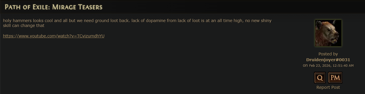 Wait, what if the ground loot grifters are just a psyop by GGG to get people to talk about some irrelevant shit while they still refuse to fix game's balancing or add QoL?